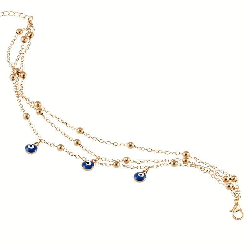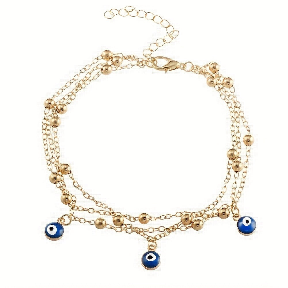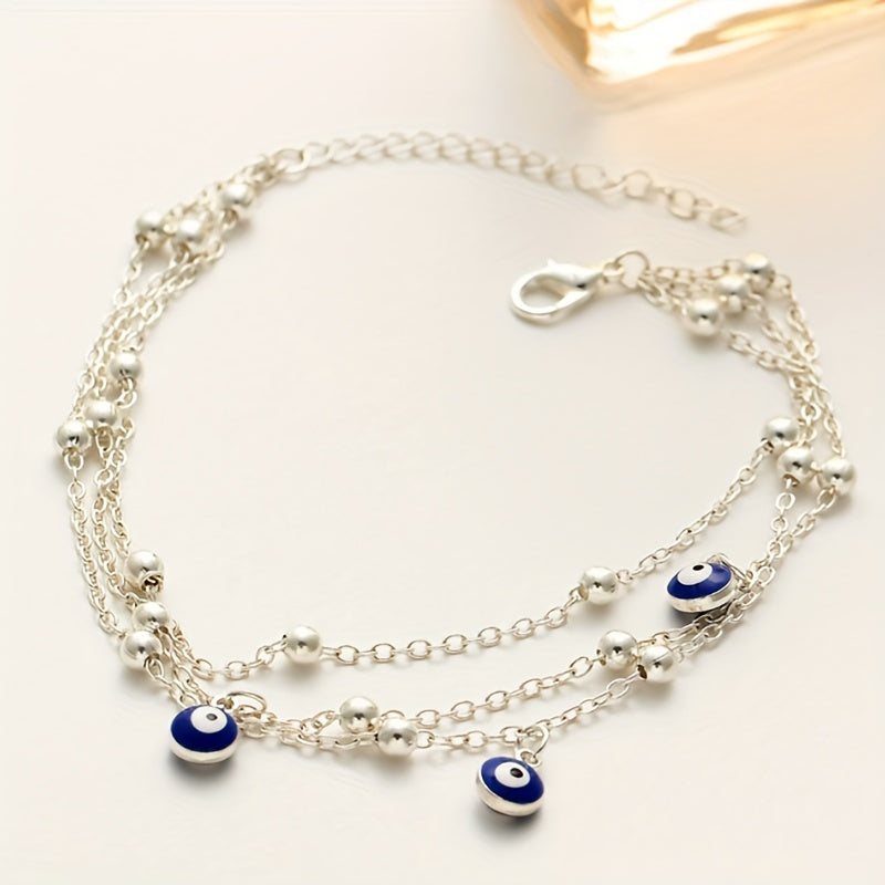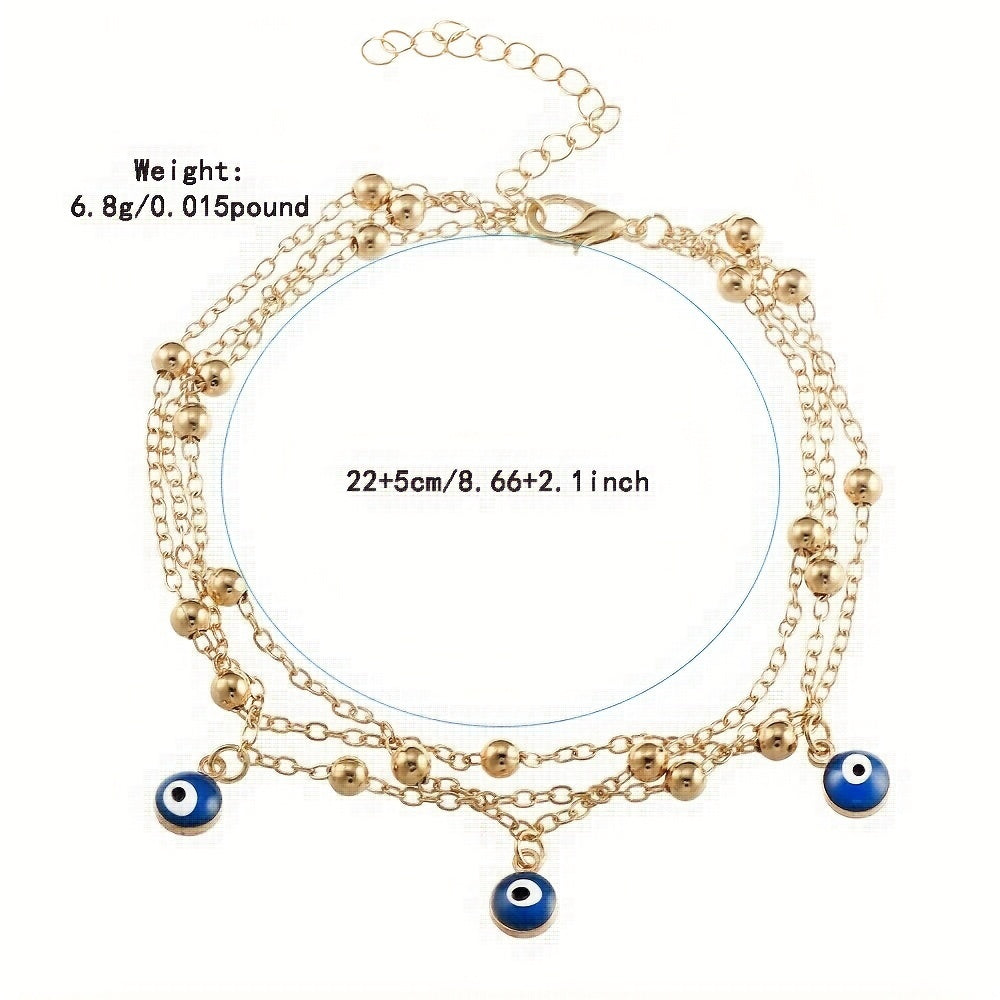 Add a touch of boho chic to your summer look with this trendy Devil's Eye shape tassel pendant anklet. Perfect for beachwear and everyday wear.