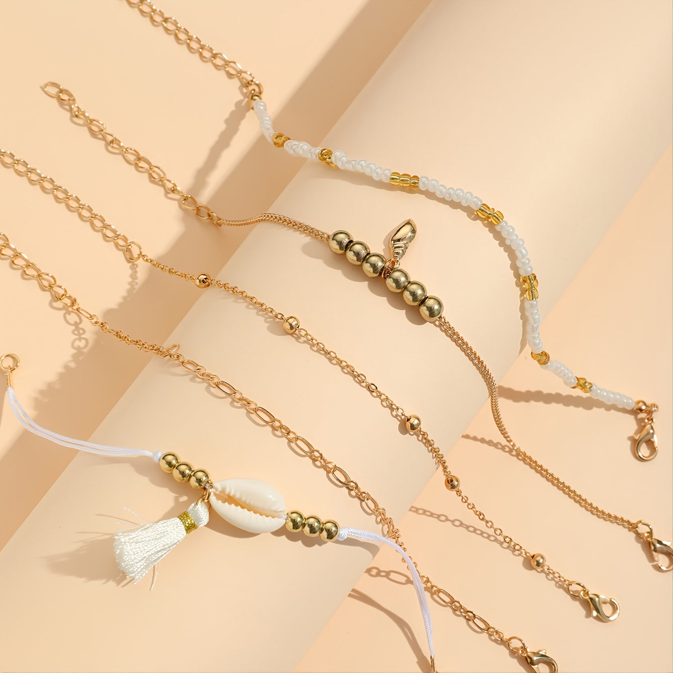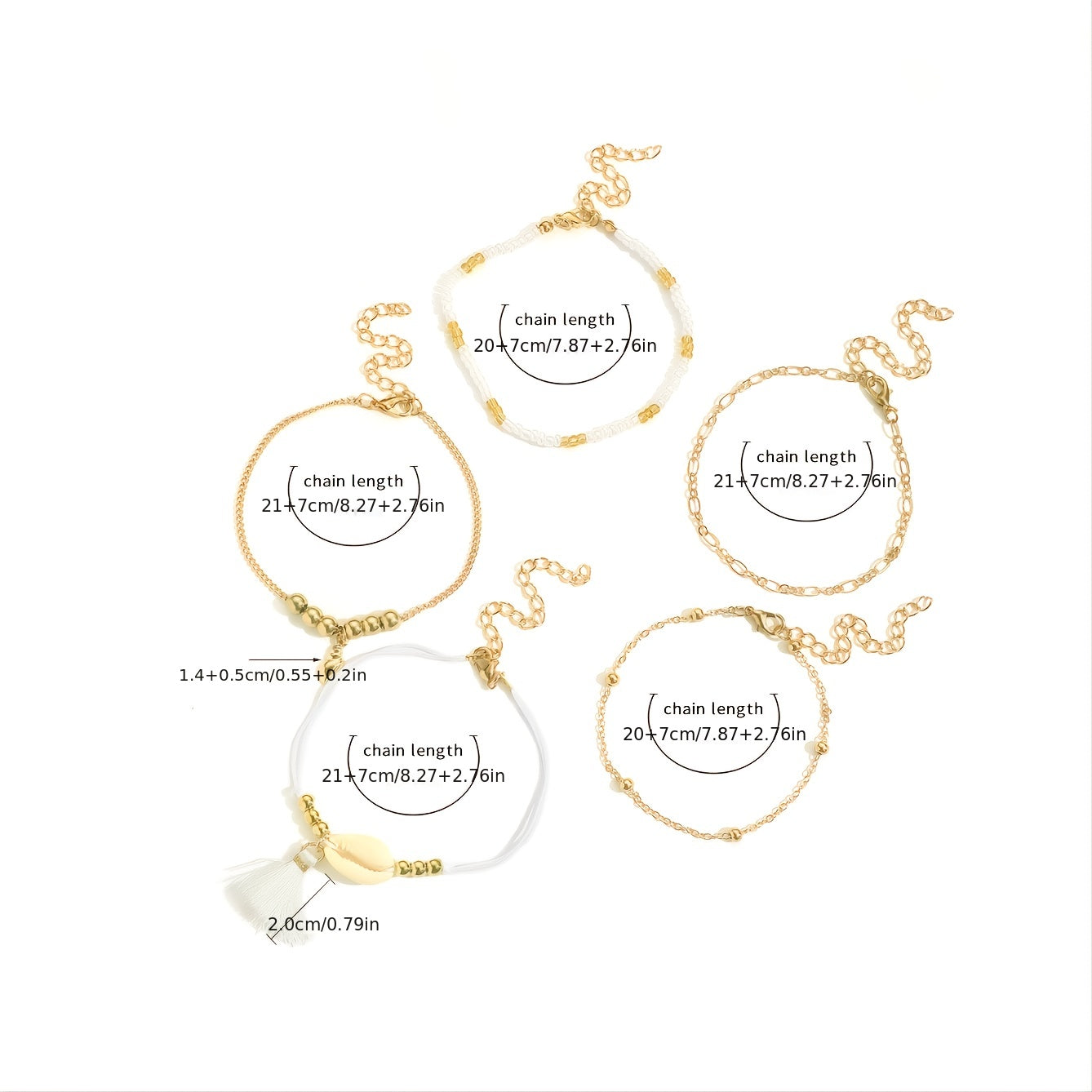 Create your own stylish anklet with rice bead shell layer, featuring a conch tassel design.