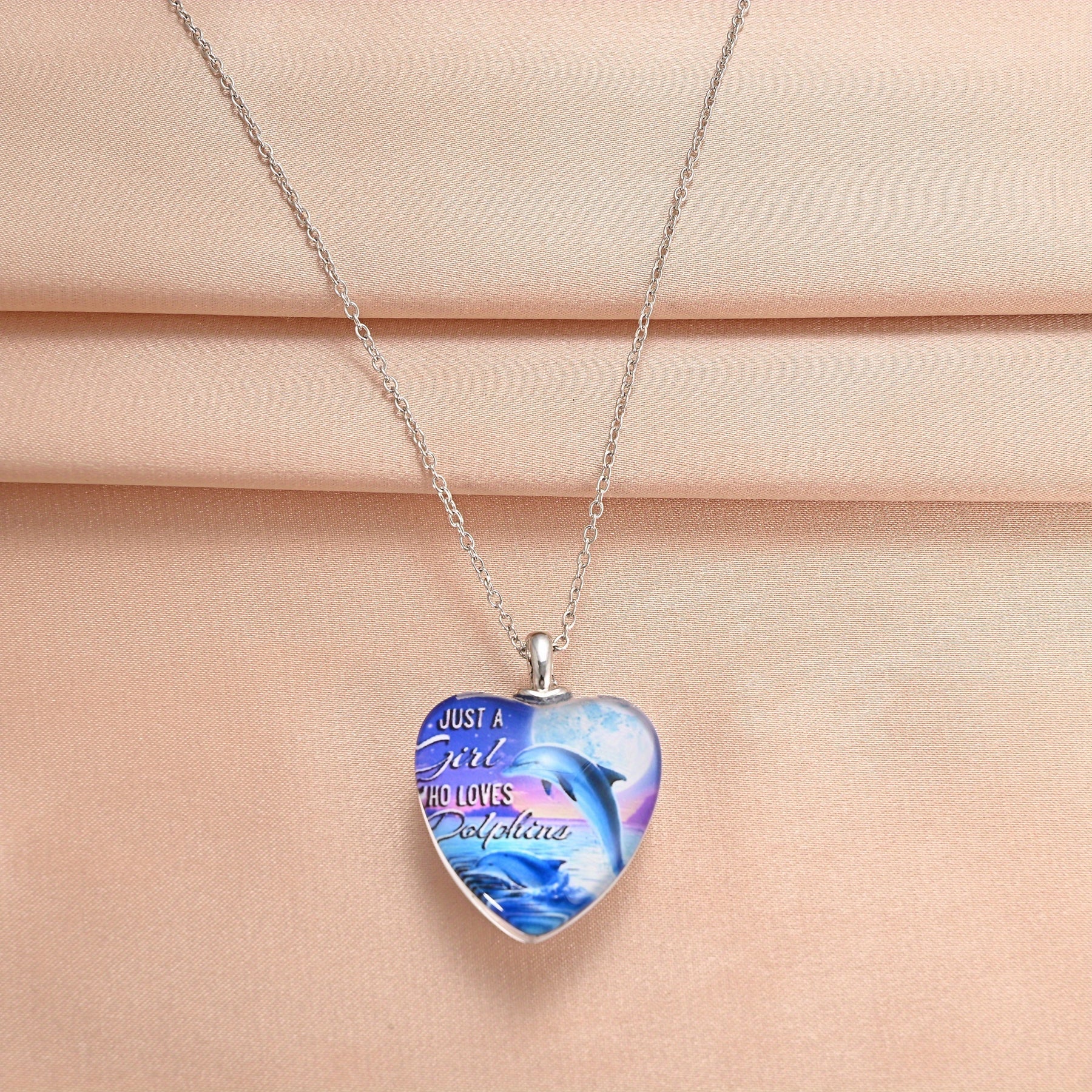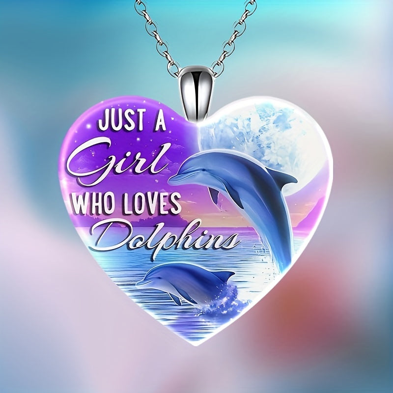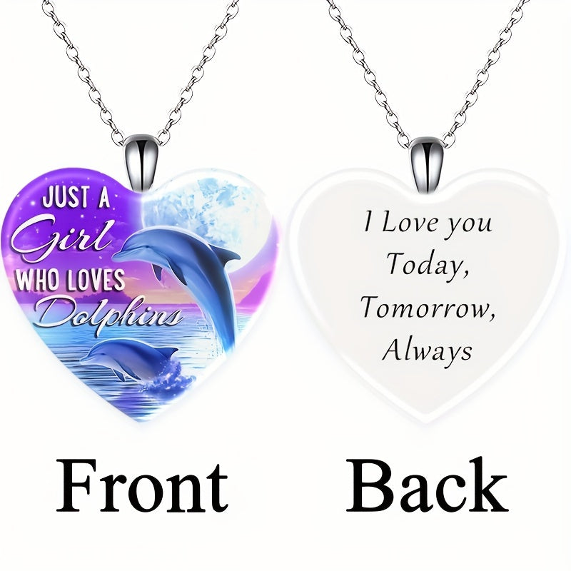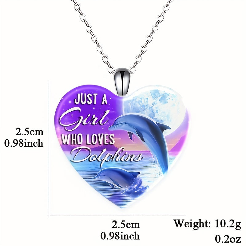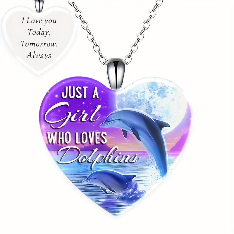This beautiful necklace features a dolphin pattern with a love heart crystal pendant, making it a perfect accessory for Christmas, holiday parties, or as a birthday gift.
