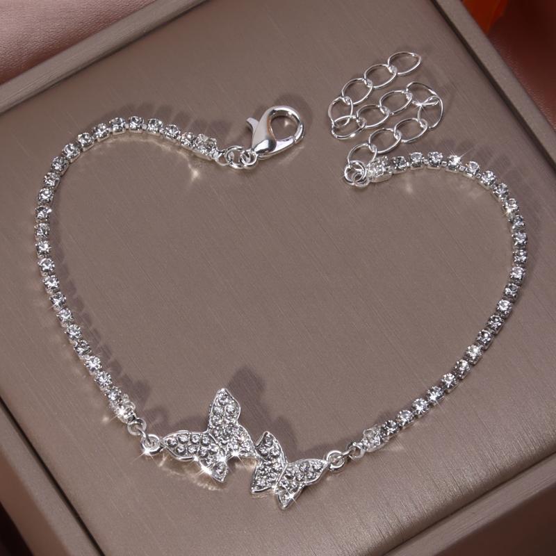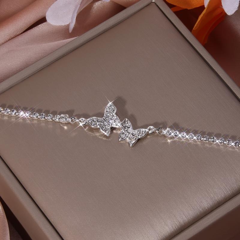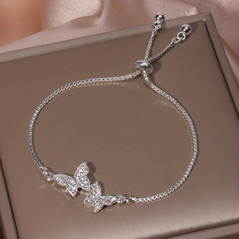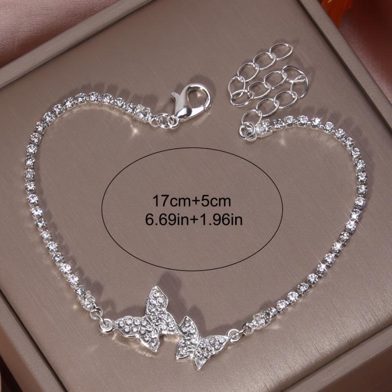 This adjustable hand chain features a double butterfly design with rhinestones for a touch of glamour. Perfect for parties or special occasions.