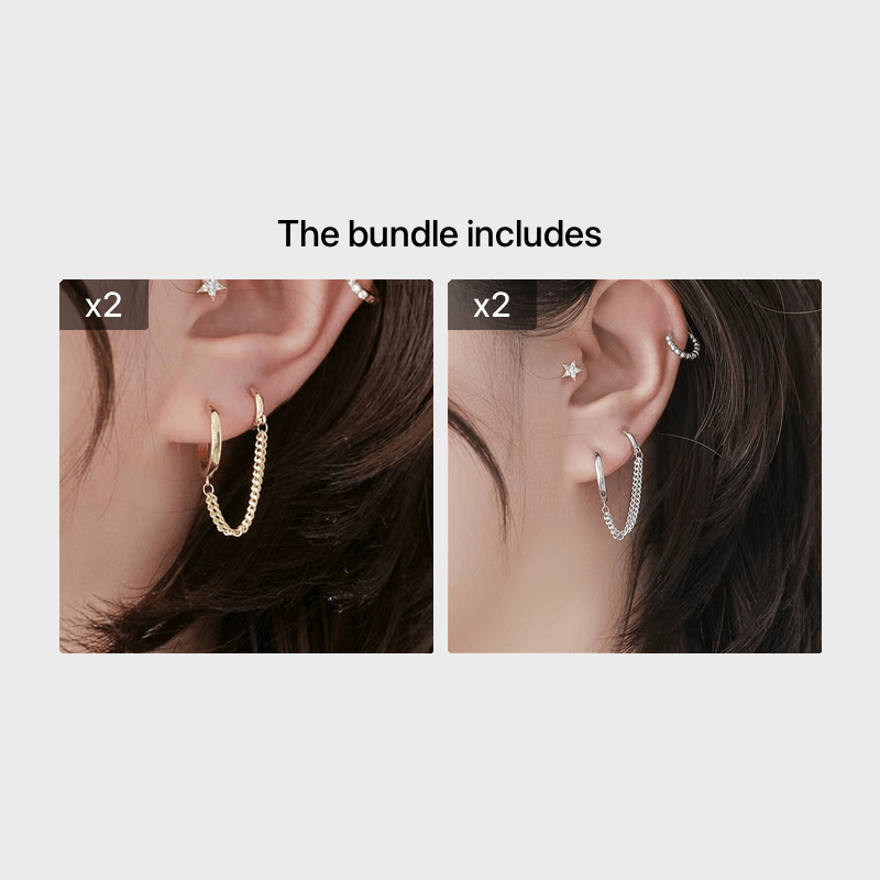 Elegant and stylish double chain hoop earrings plated with 18K gold, perfect for women and girls. Makes a great gift for any occasion.