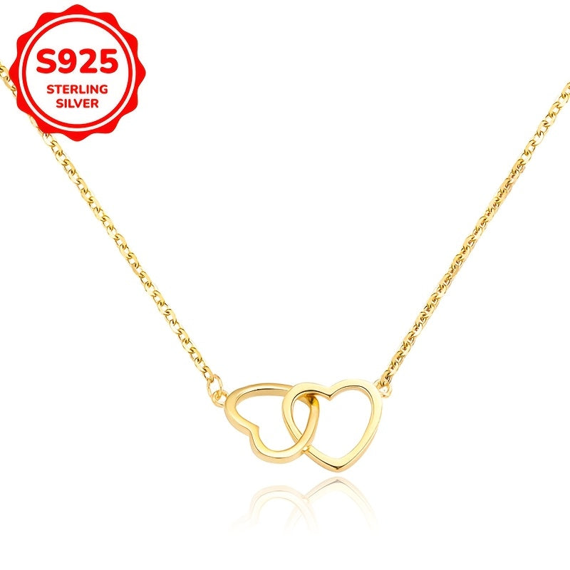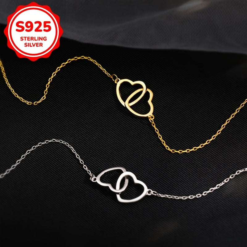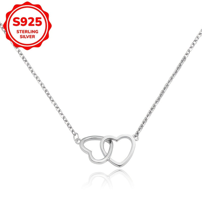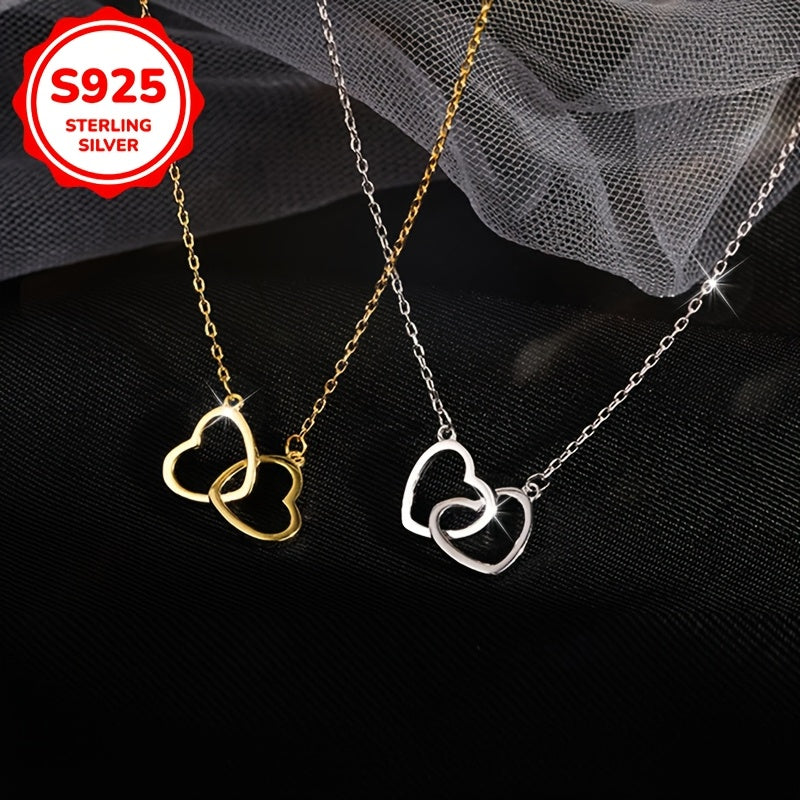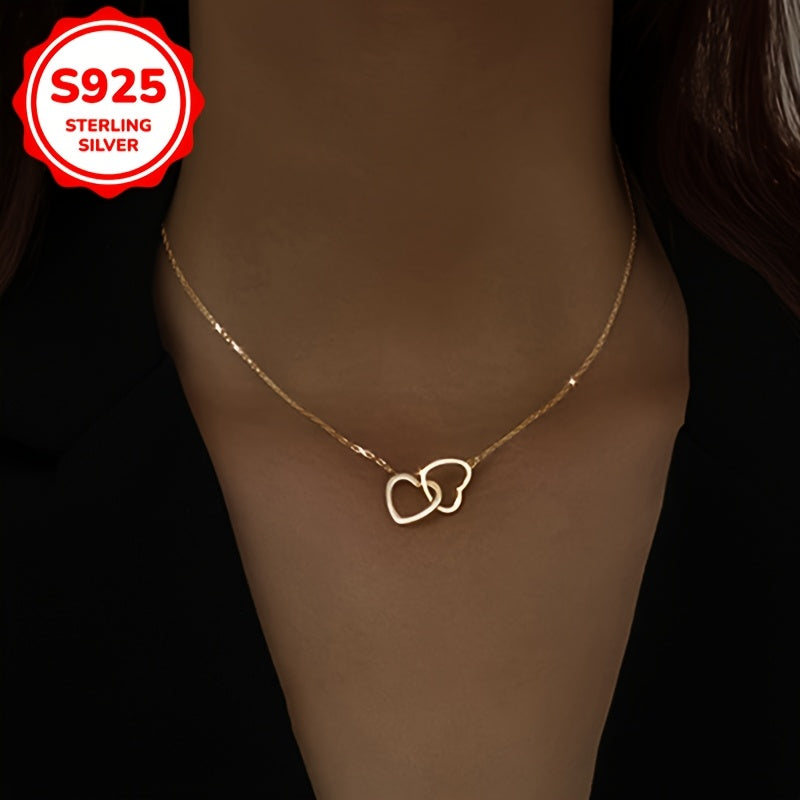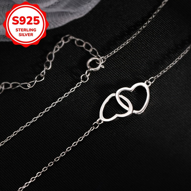 This elegant double heart pendant necklace is crafted from 925 sterling silver, making it perfect for casual attire or as a thoughtful gift for someone special.