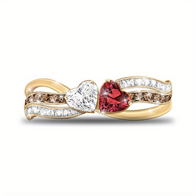 This stunning double heart promise ring is plated with 14K gold, making it a perfect choice for weddings, engagements, or as a heartfelt Valentine's gift.