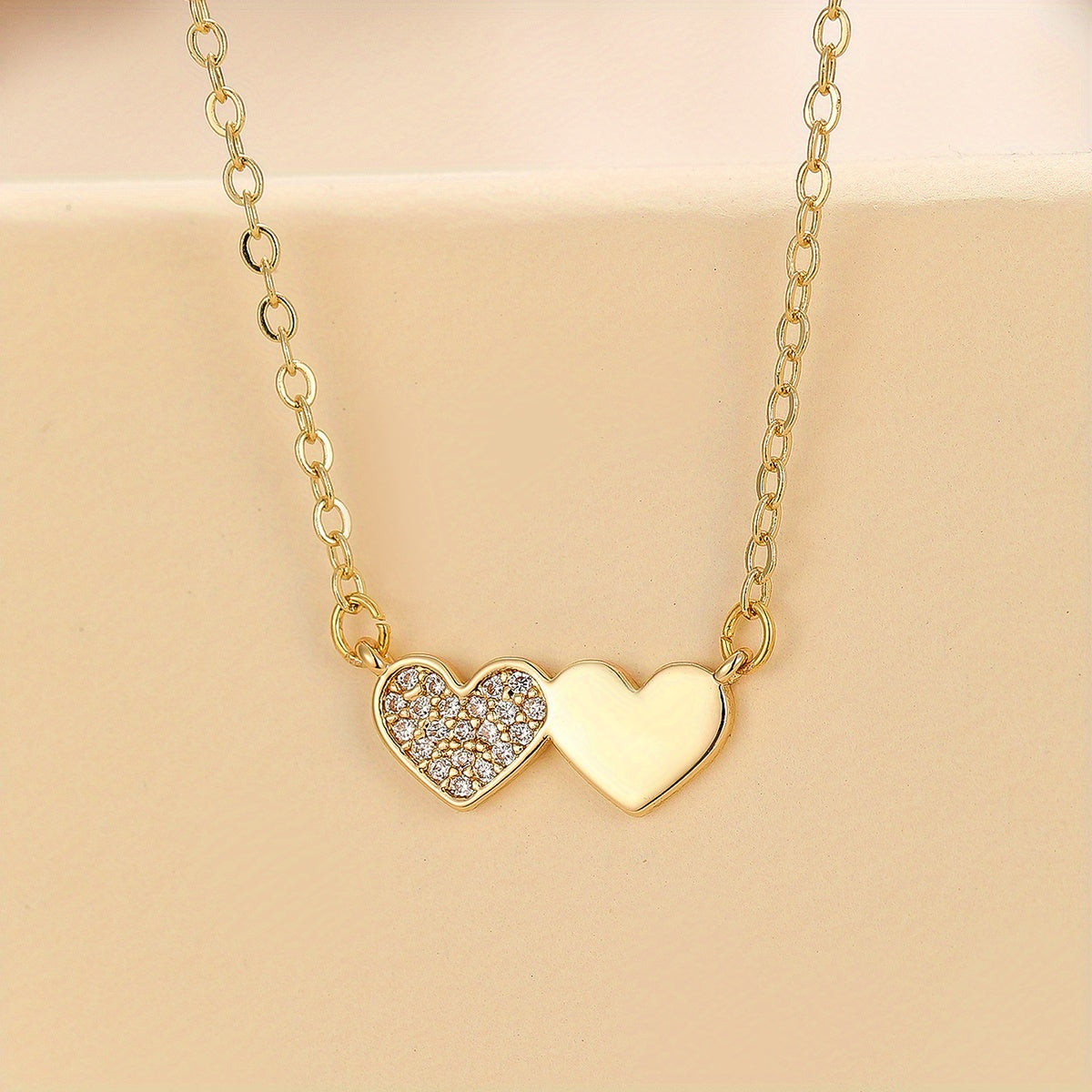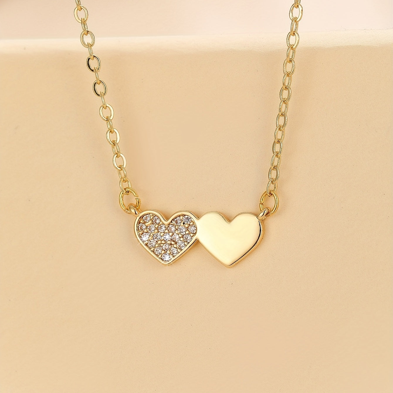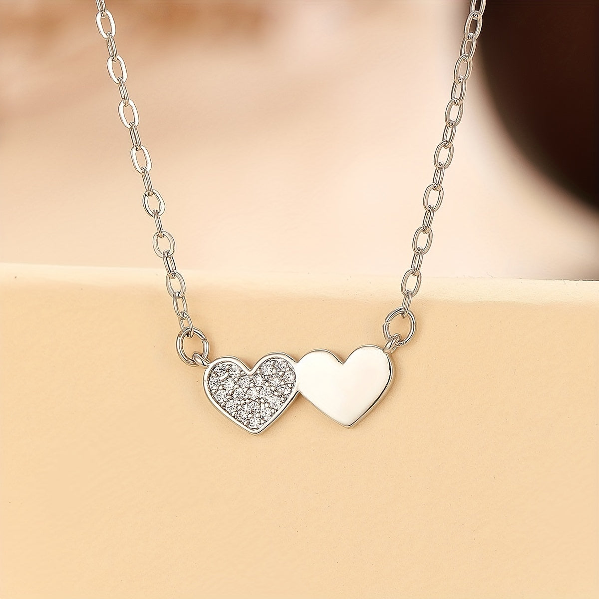 Express your unique personality with this creative double heart zircon pendant necklace. The romantic design makes it a perfect gift for females.