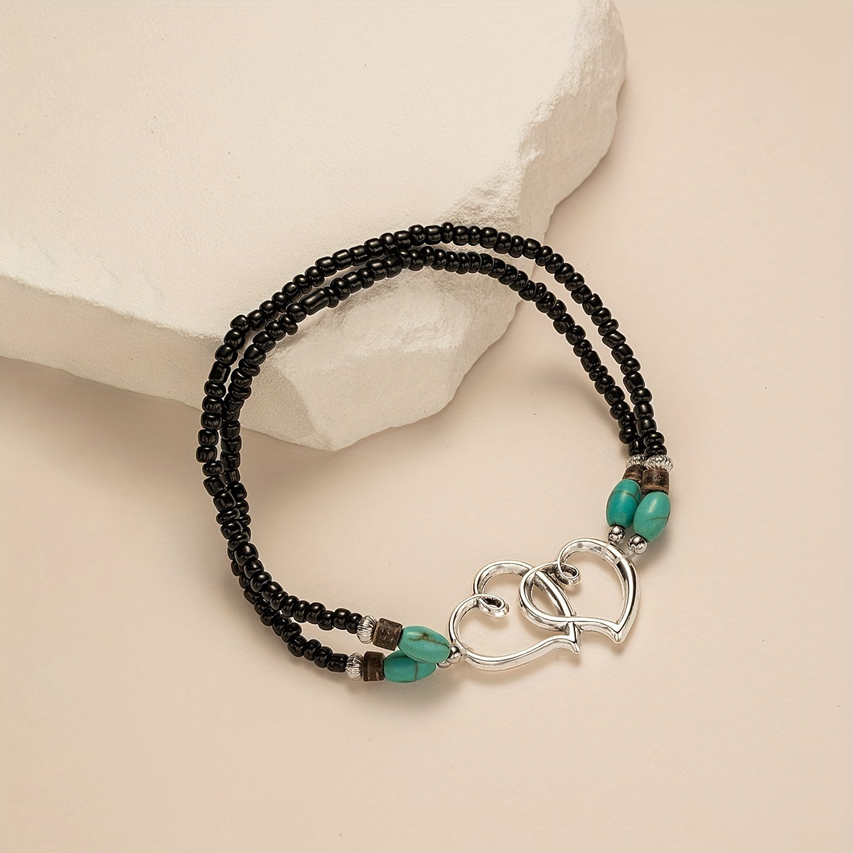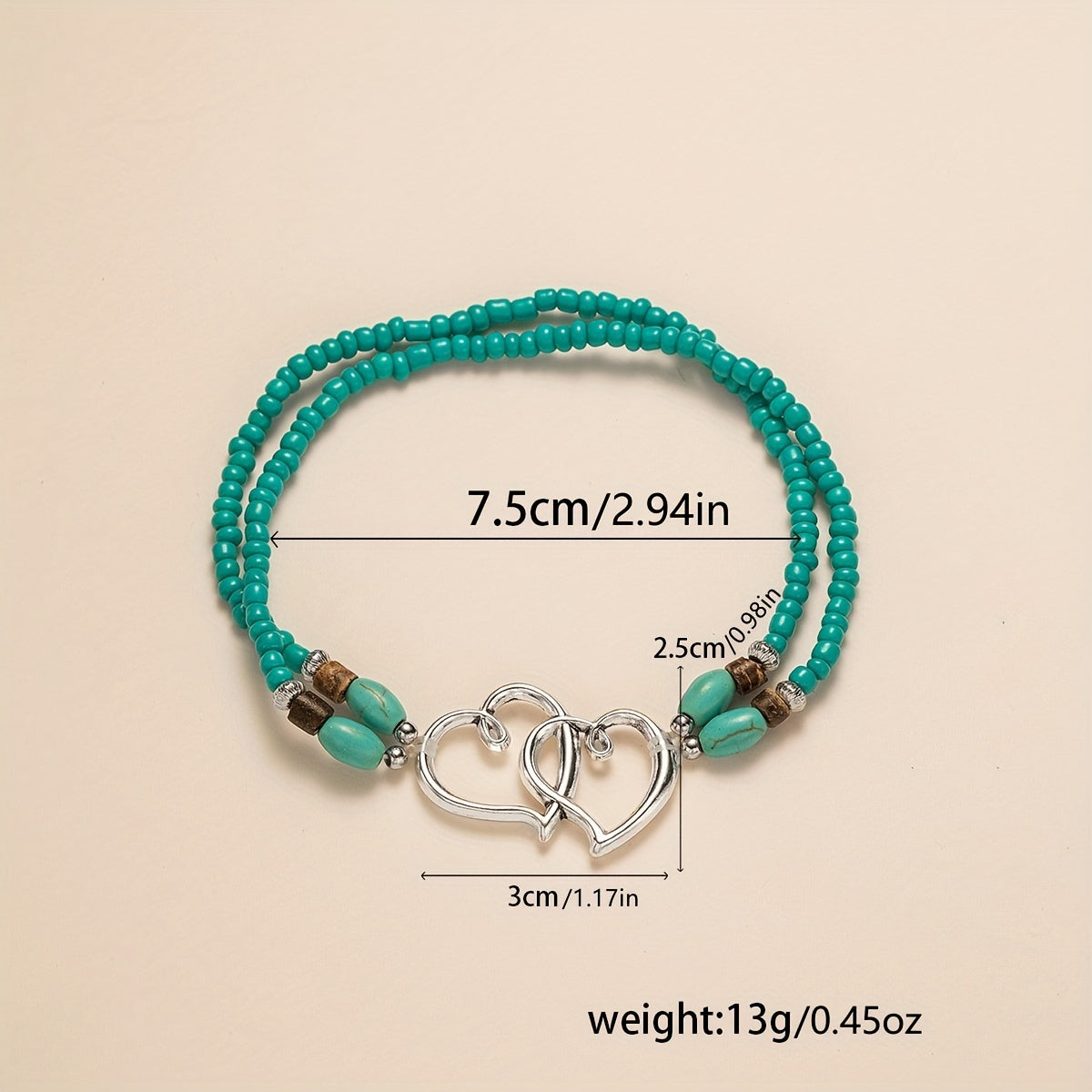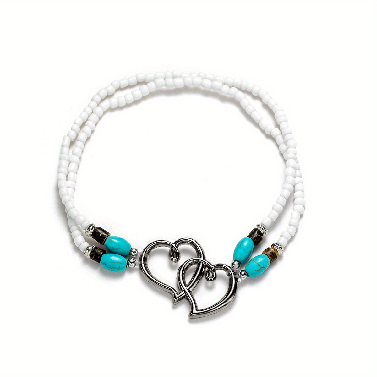 Add a touch of boho style to your look with this double hollow love heart beaded anklet featuring mini round beads. Perfect foot jewelry decoration for a trendy vibe.