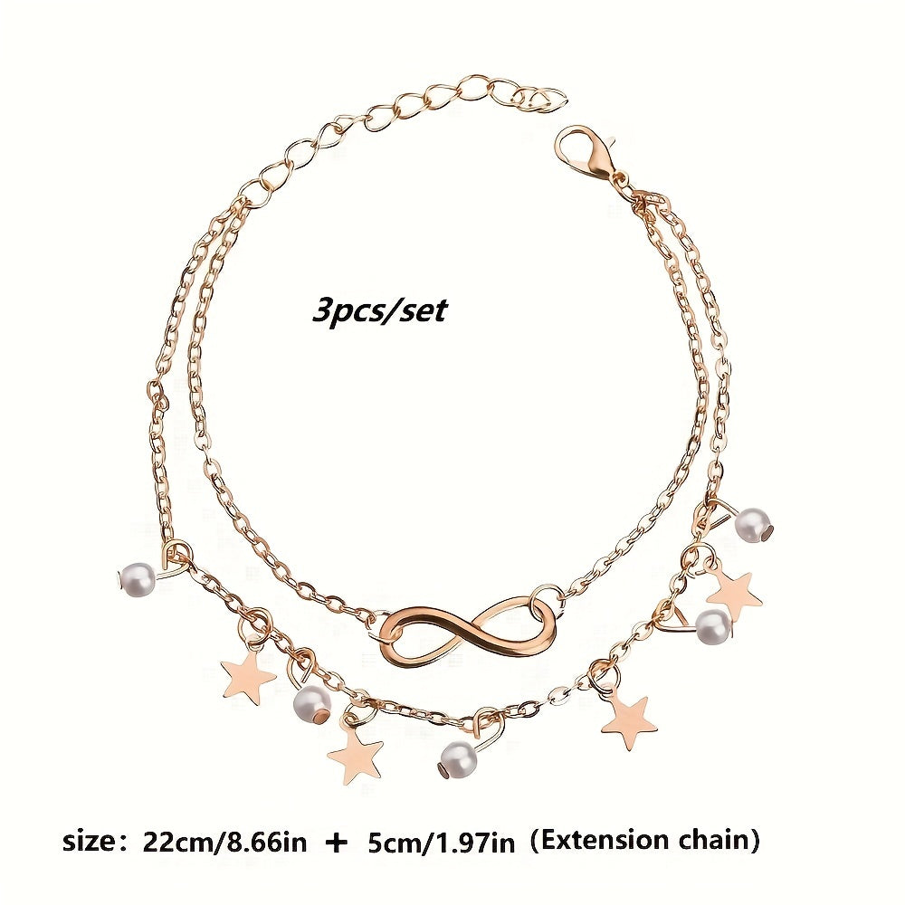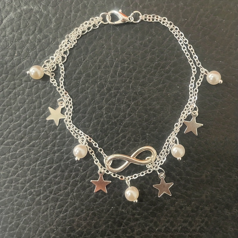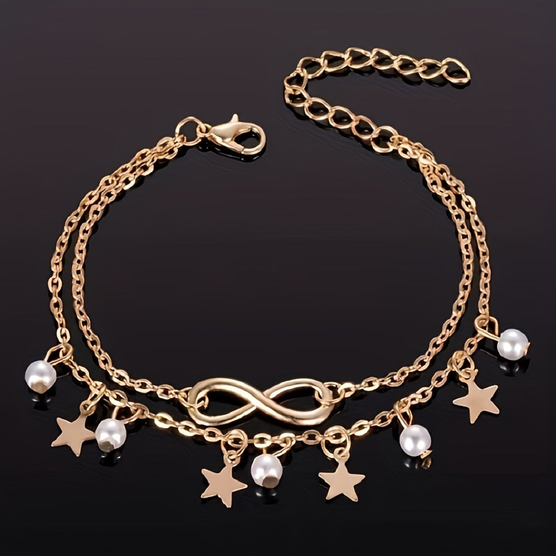 This anklet is a stylish accessory for the beach or any casual outfit. The double layer design with 8 shaped pendant adds a unique touch to your look.