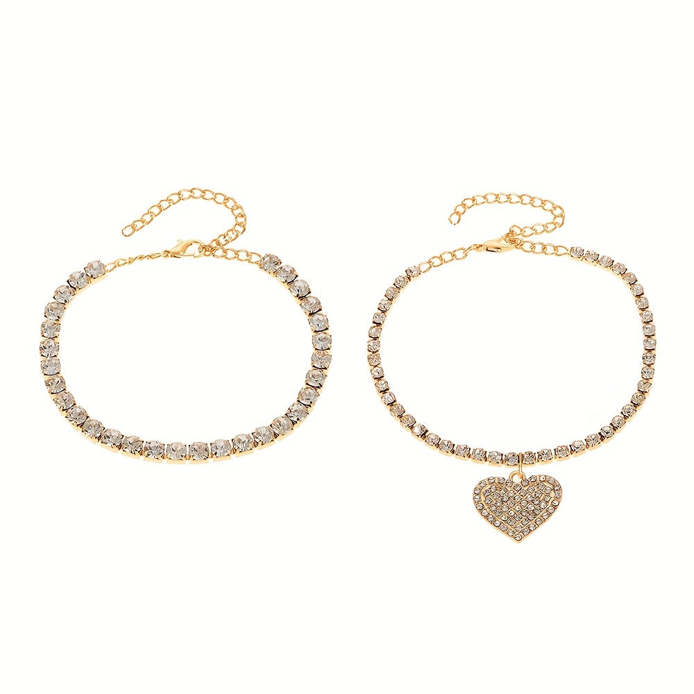 • Set of 2 anklets with love heart shape pendants