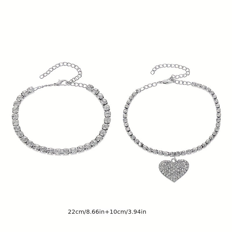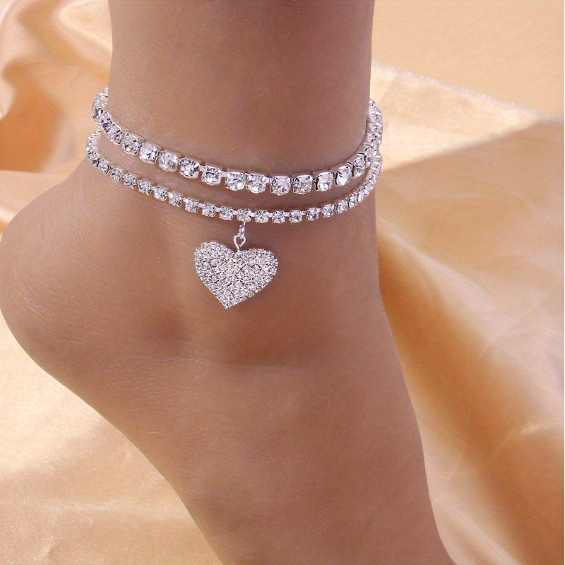Double Layer Chain Anklet Love Heart Pendant Foot Accessory 2 Pcs