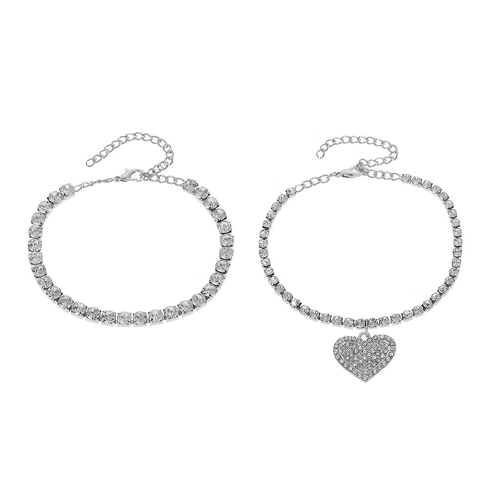 Add a touch of romance to your beach look with these double layer chain anklets featuring love heart shape pendants. Perfect for everyday wear or special occasions.