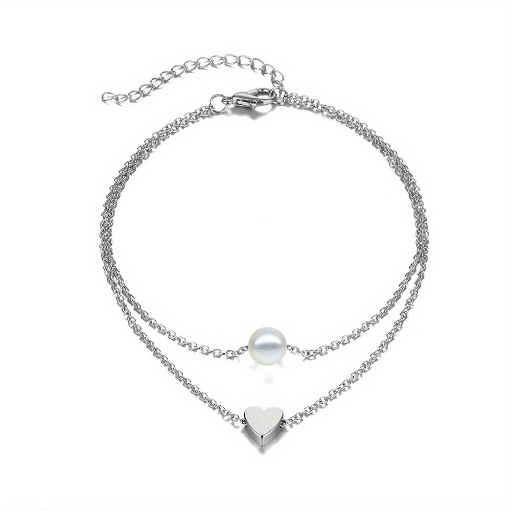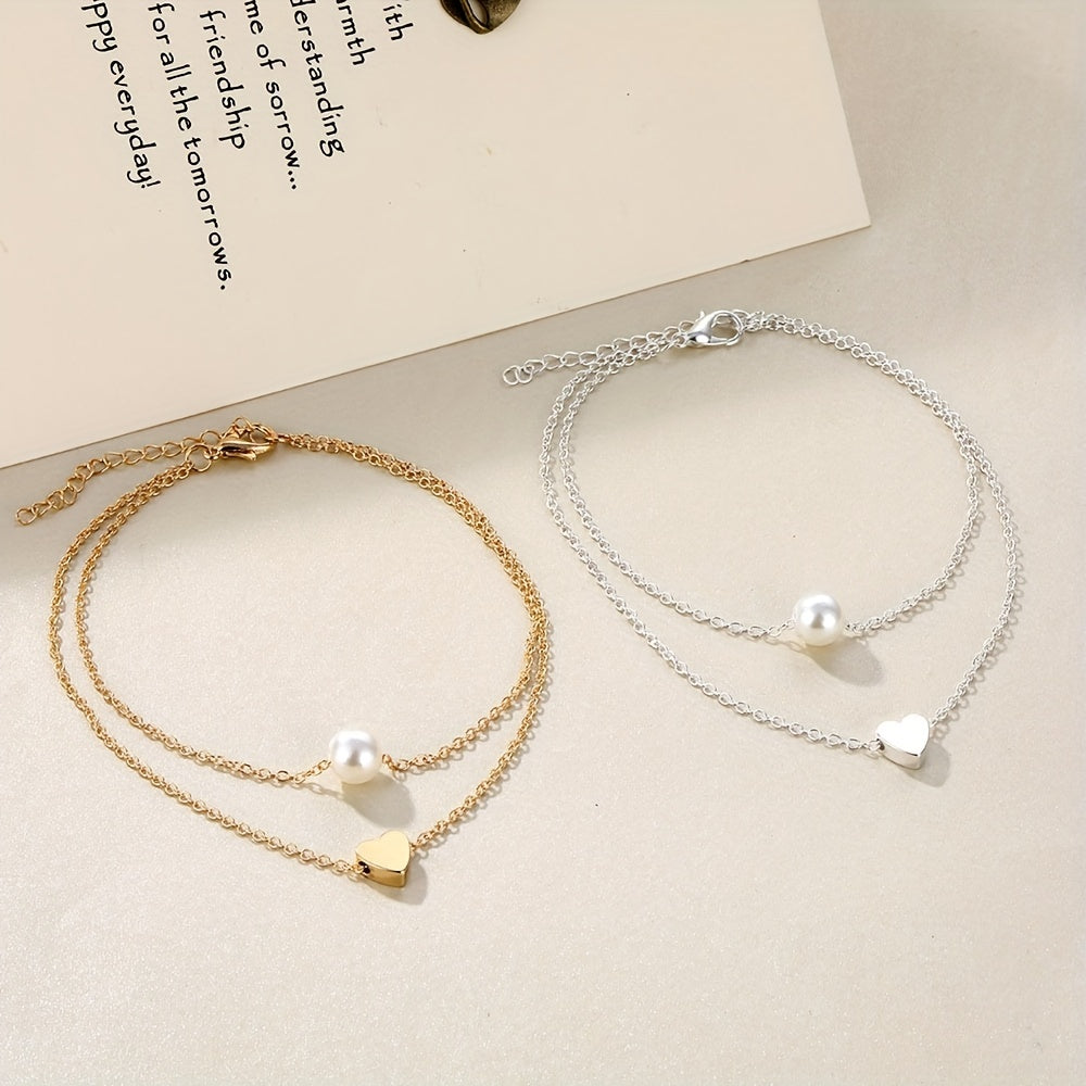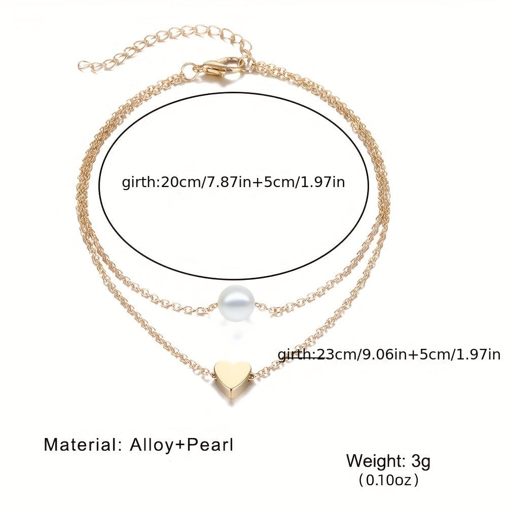 Add a touch of elegance to your ankle with this beautiful anklet set. The combination of faux pearls and love heart beads gives a beachy, ocean-inspired look.