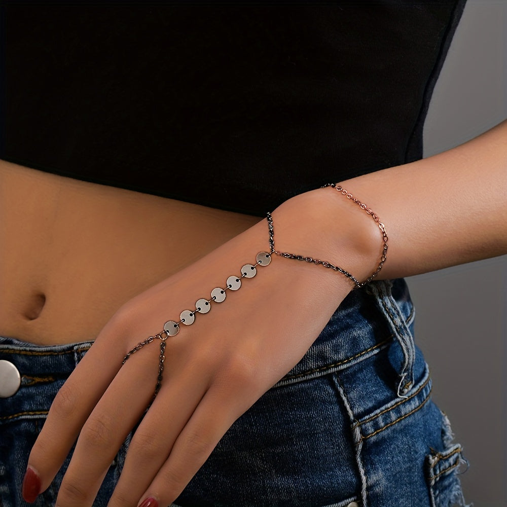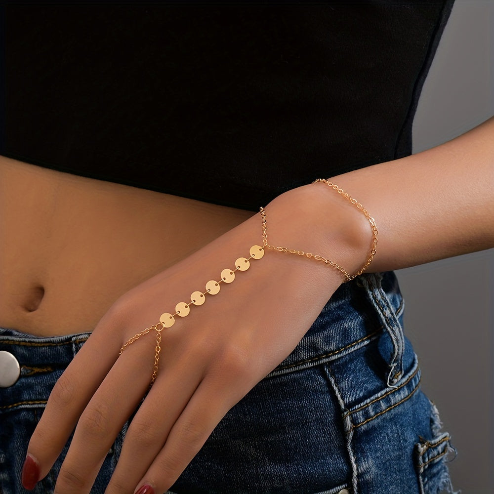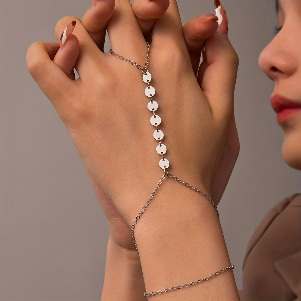 Add a touch of style with this double layer chain finger mitten bracelet. Made of alloy, this accessory is perfect for women and girls.