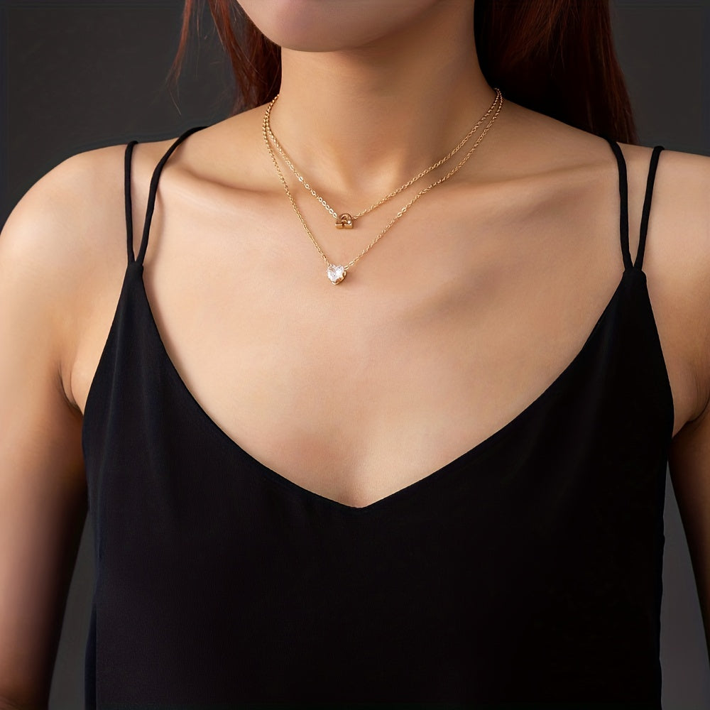 Elegant and stylish double layer chain necklace made of 18K plated copper, perfect for women and girls. Great addition to any outfit for a touch of sophistication.