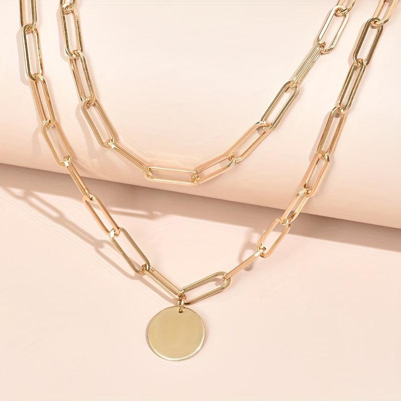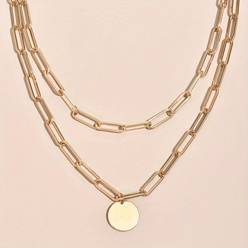 Elevate your style with this chic double layer disc chain necklace, perfect for adding a touch of sophistication to any outfit.