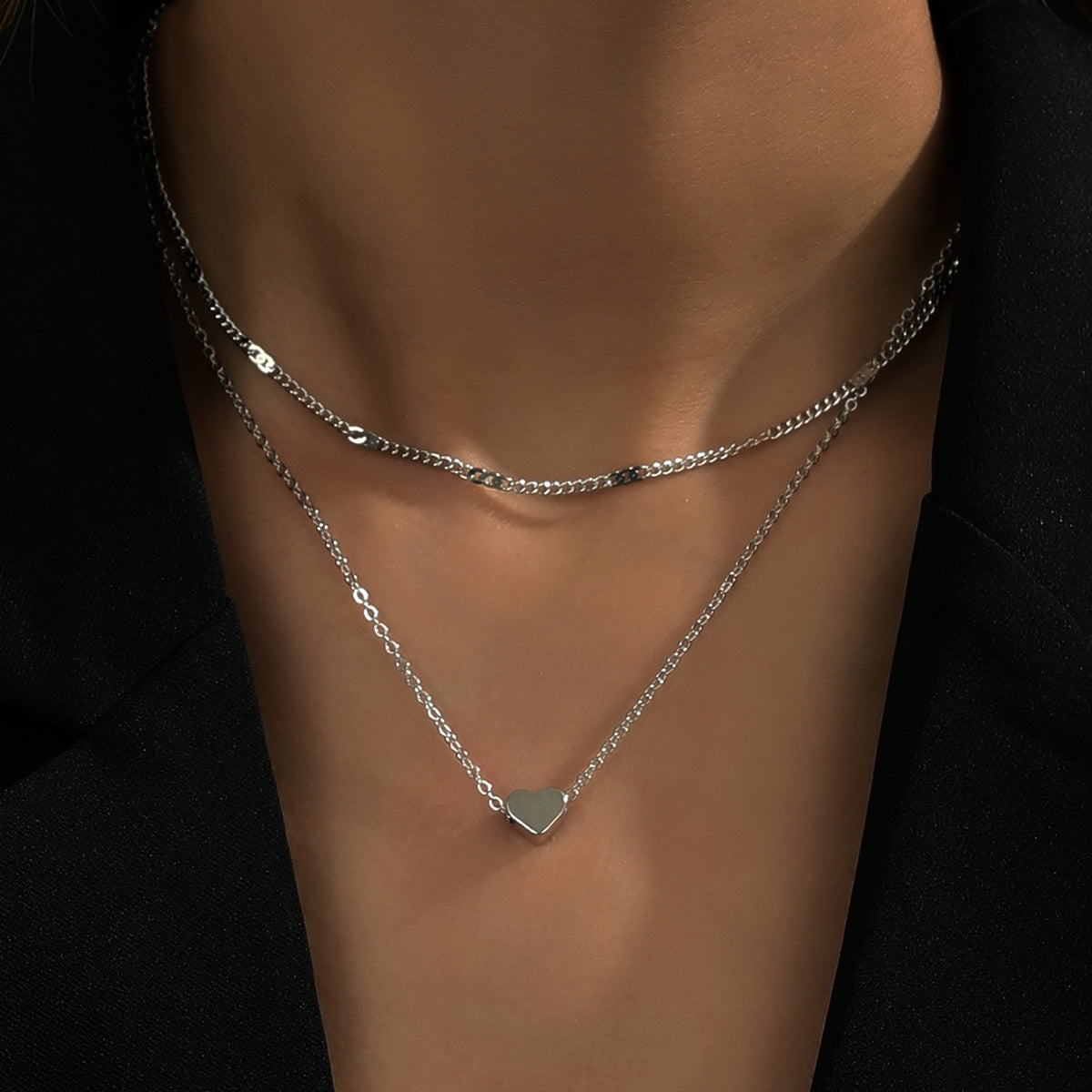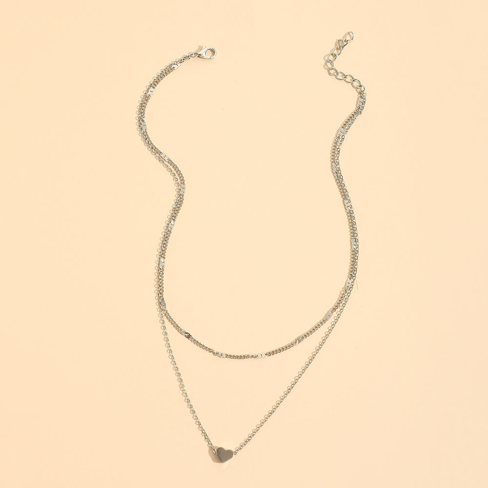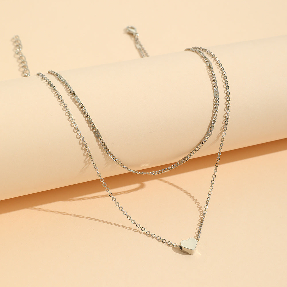This elegant necklace features a double layer design with a peach heart pendant, perfect for expressing your love. The frigid wind chain adds a unique touch to any outfit.