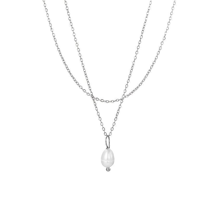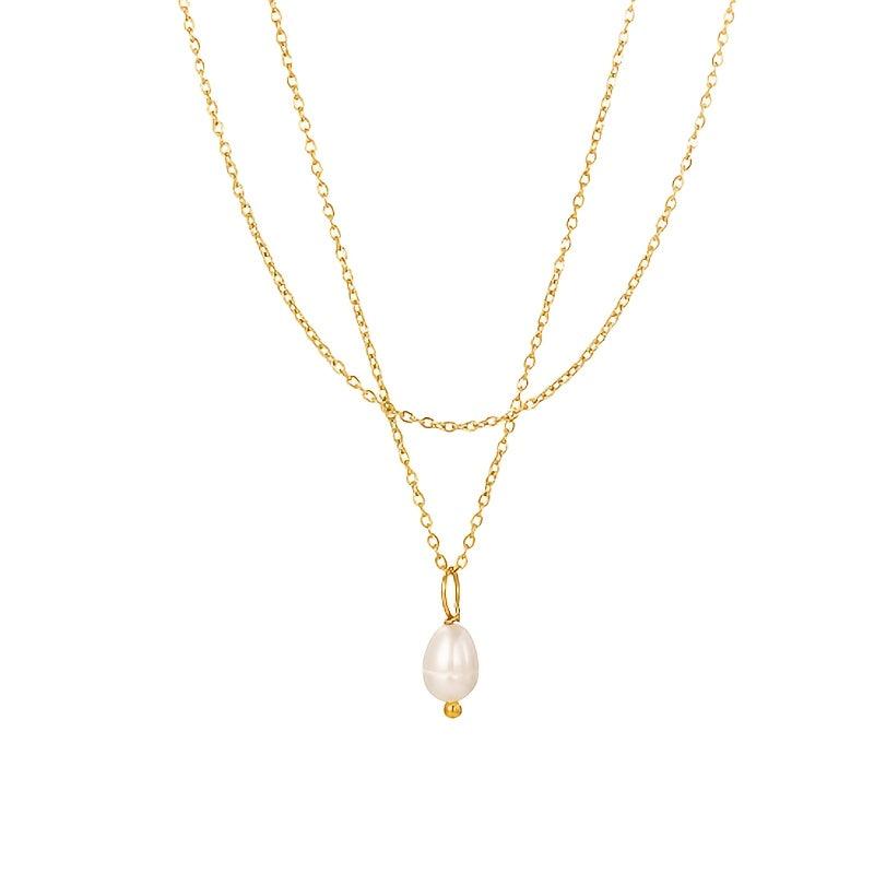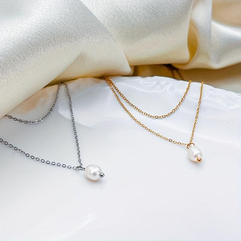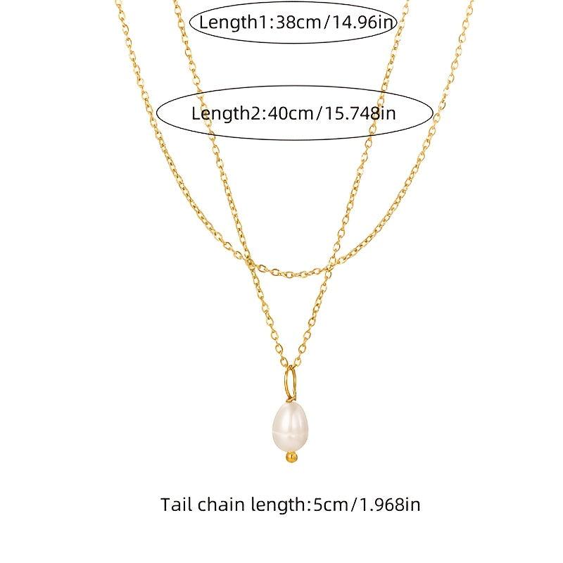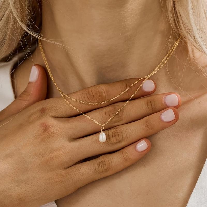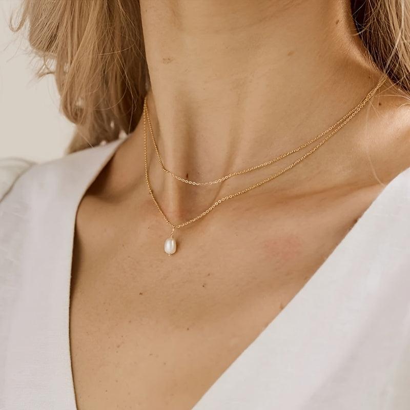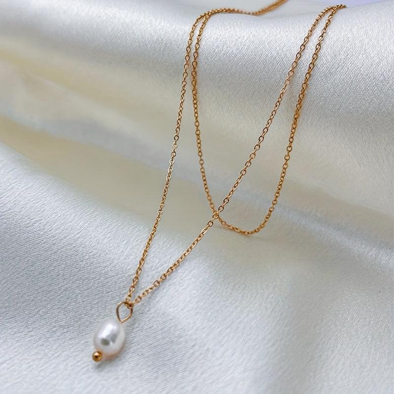 This necklace features a double layer design with a freshwater pearls pendant on a golden tone chain. It is a versatile piece of everyday jewelry that makes a great gift for her, suitable for year-round wear.