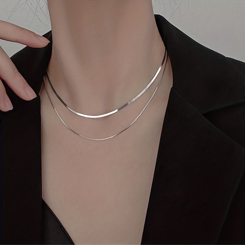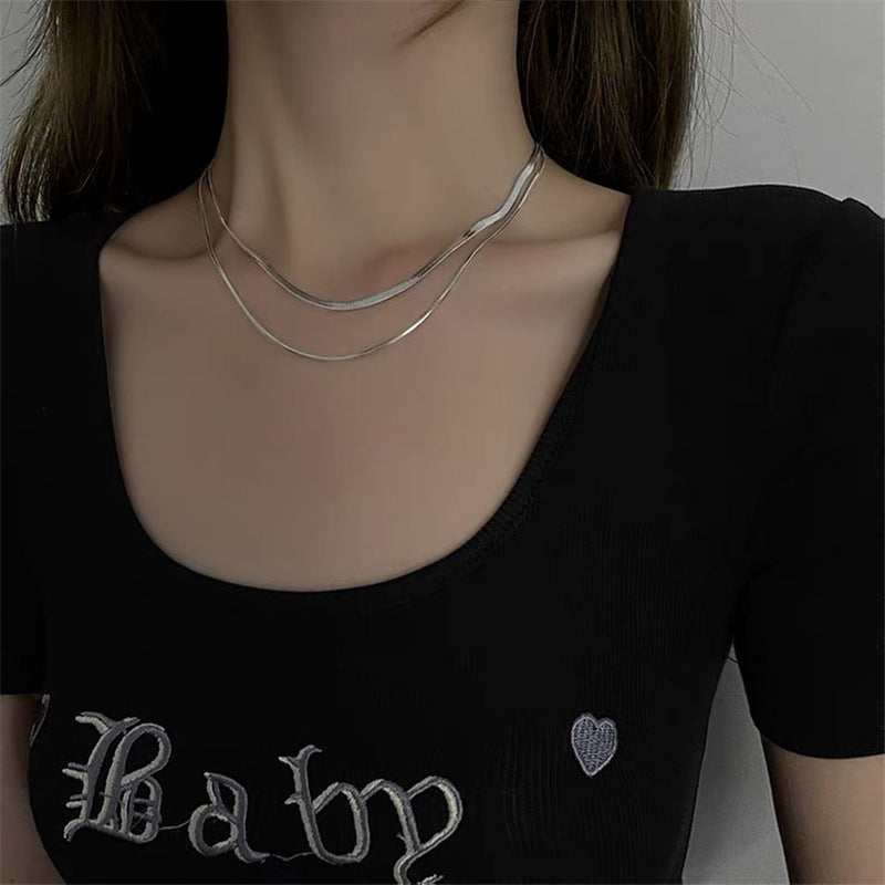 Upgrade your accessory game with this retro titanium steel necklace featuring a double layer snake bone chain design. Perfect for adding a touch of edge to your outfit.