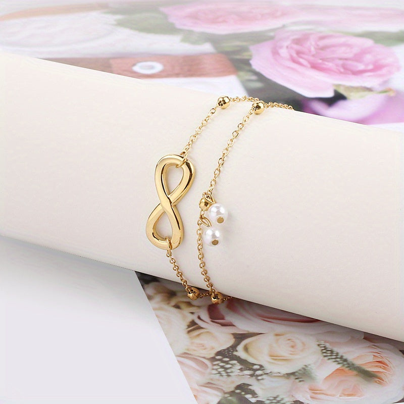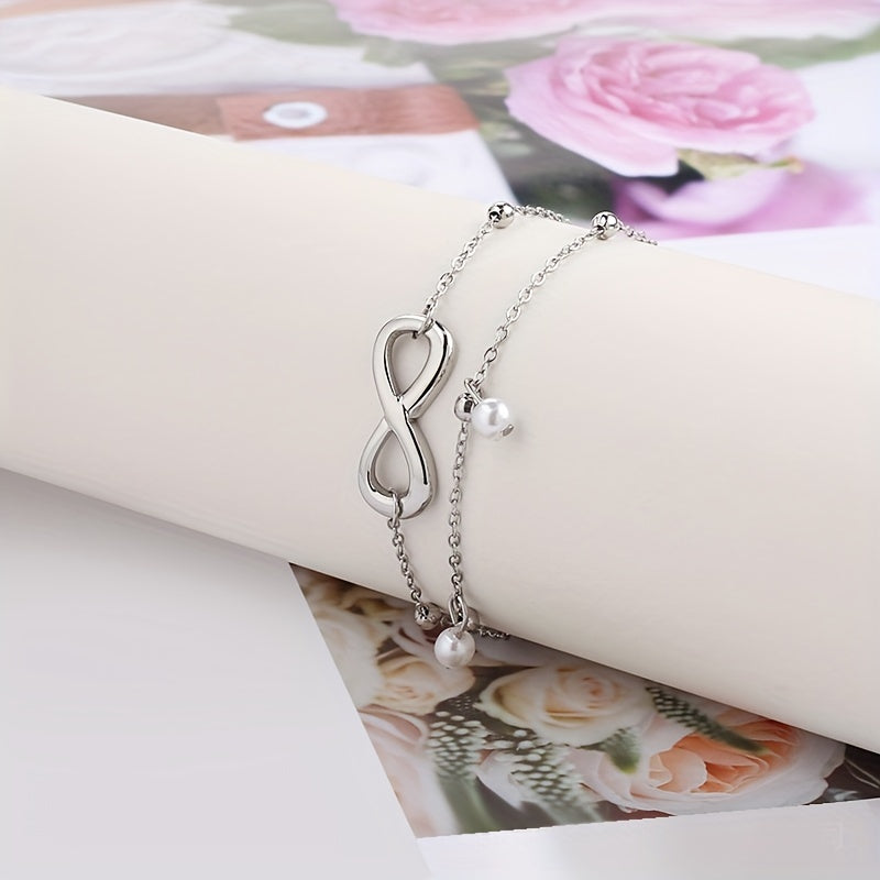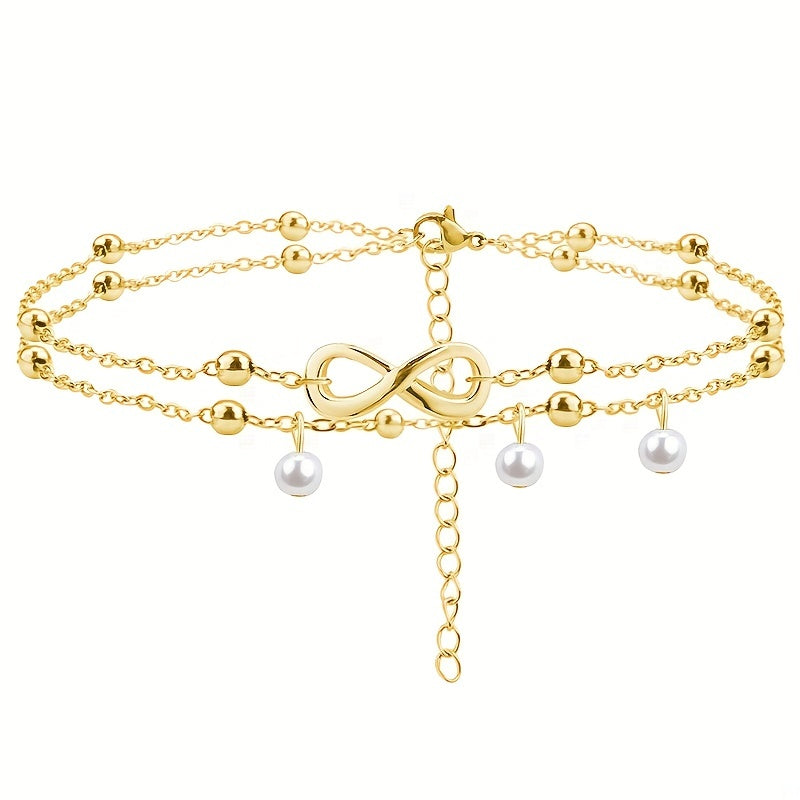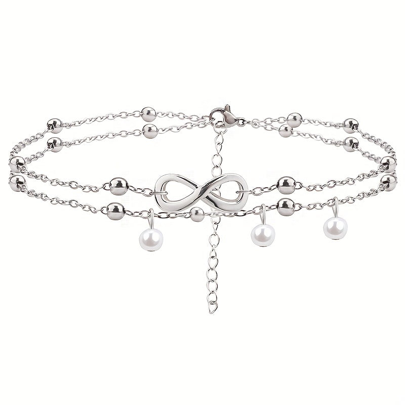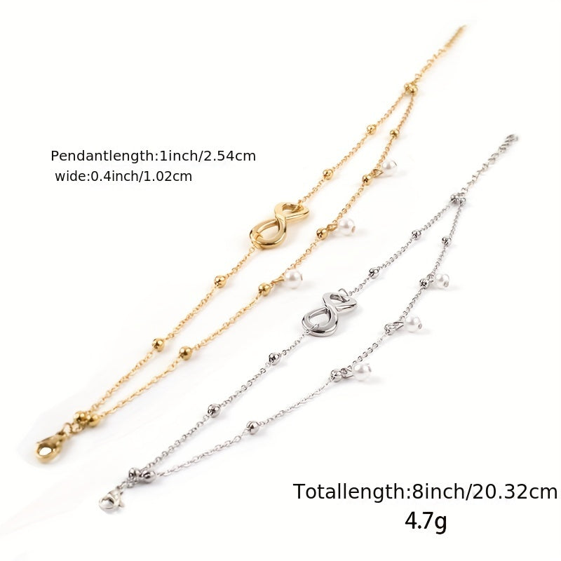Add a touch of elegance to your look with this delicate ankle bracelet featuring faux pearls and an infinity symbol design. Perfect for everyday wear or special occasions.