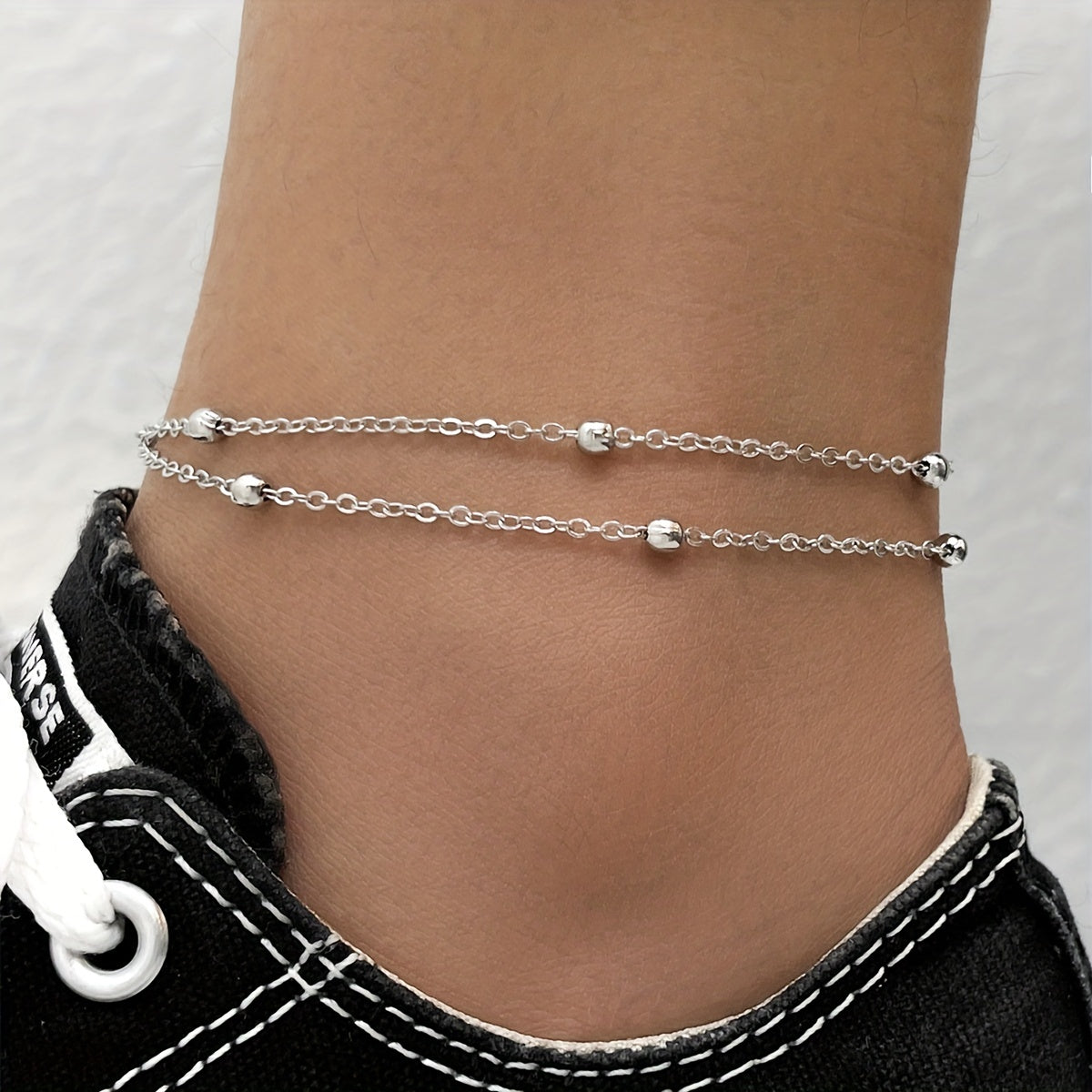 Add a touch of elegance to your style with this double layer anklet featuring small round beads. Perfect for everyday wear or special occasions.