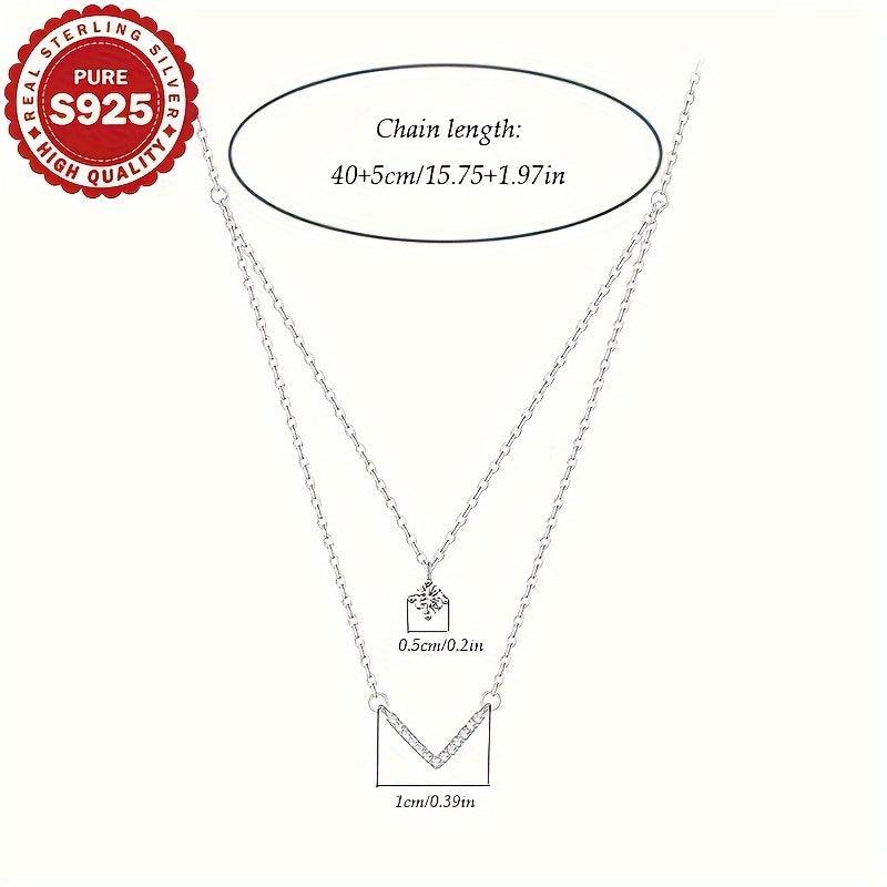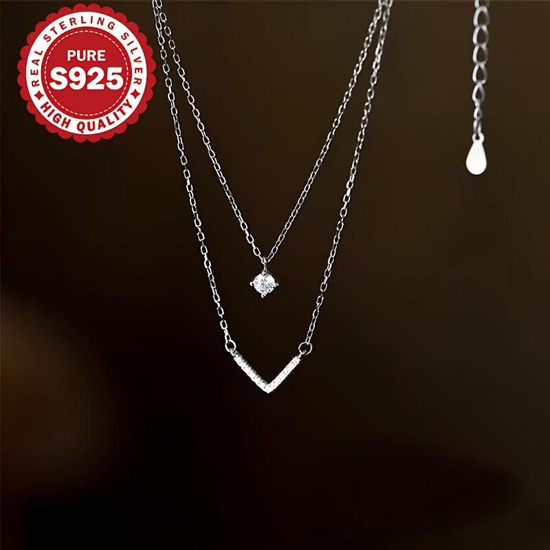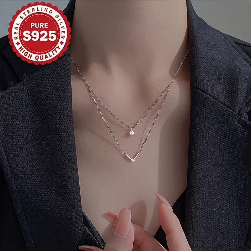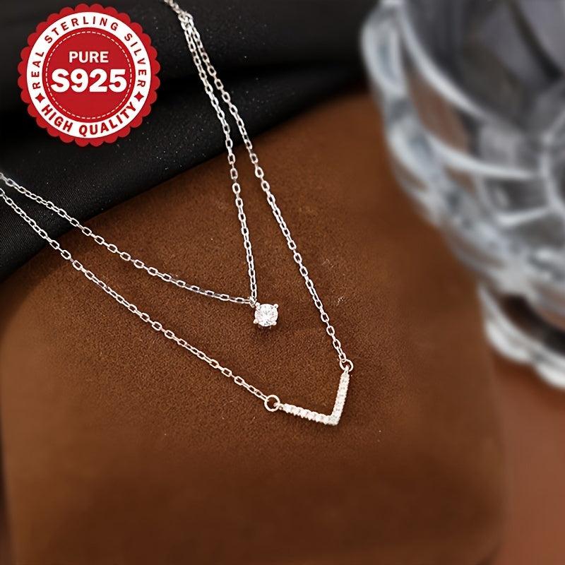 Elegant S925 Silver Necklace with V-shaped design and zirconia stones, perfect for festive events. Hypoallergenic and lightweight at 3g, ideal for gifting.