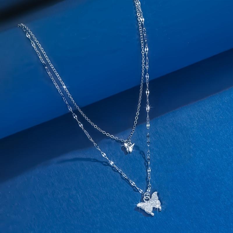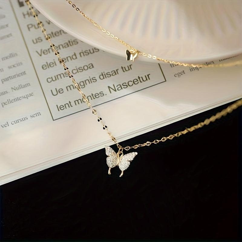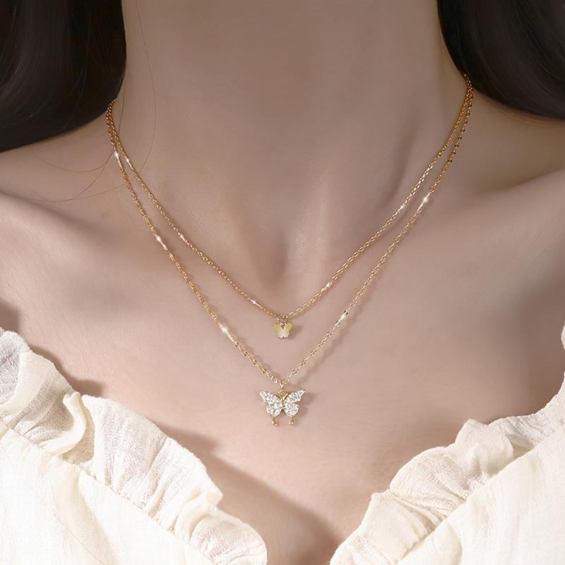 Add a touch of elegance to your outfit with this double layered butterfly pendant necklace. Made of zinc alloy and synthetic gemstones, this versatile accessory is perfect for daily wear or special occasions.