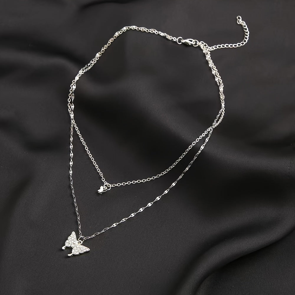 Add a touch of vintage and minimalist style to your casual attire with this butterfly pendant necklace featuring sparkling rhinestones.