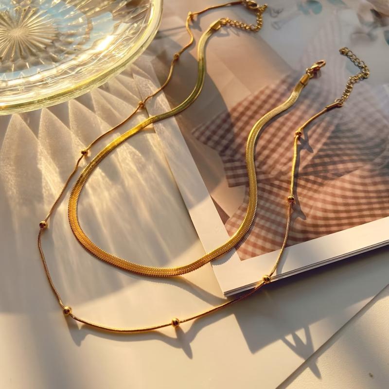 This fashionable double layered necklace for women features a stainless steel blade pendant paired with a round bead snake chain. Perfect for daily wear, parties, and festive celebrations.