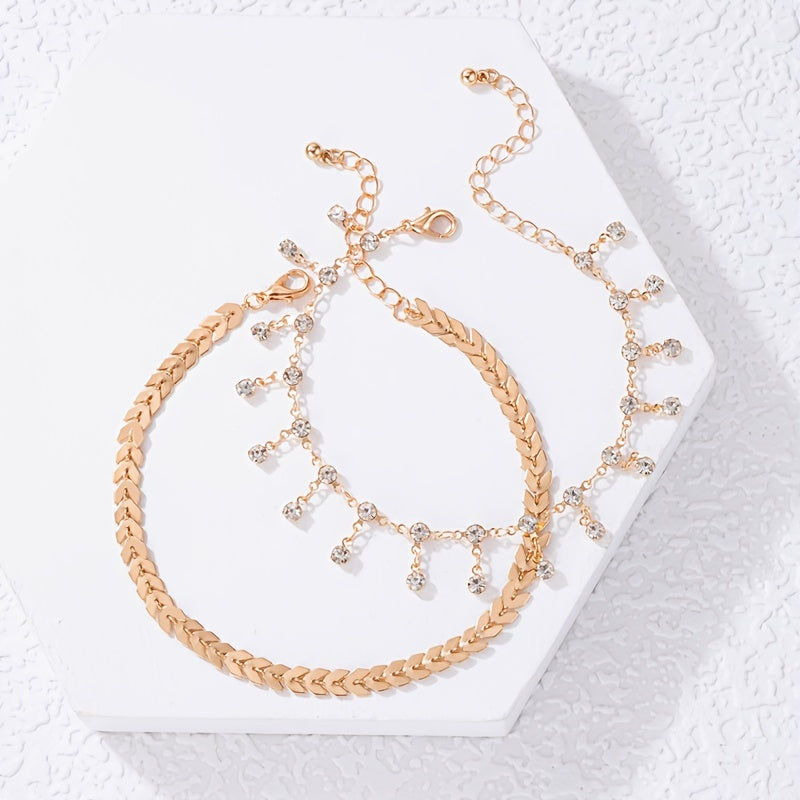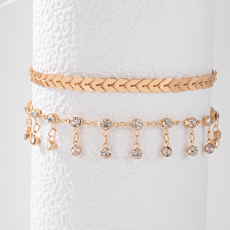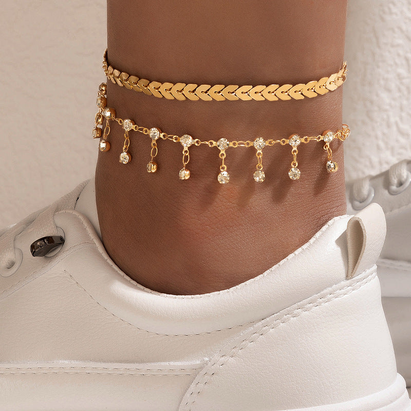 Add a touch of glamour to your look with this double layers anklet featuring rhinestones and tassel chain. The adjustable ankle bracelet is perfect for adding a stylish touch to your foot jewelry collection.