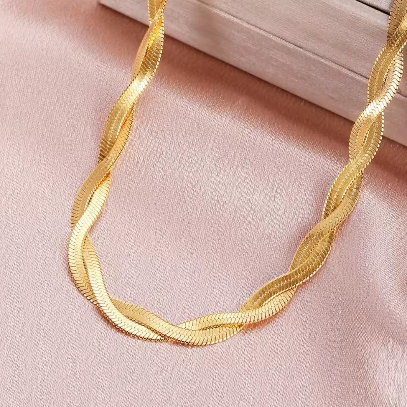 Elevate your style with this double woven cross chain necklace. Made of hypoallergenic stainless steel, it's perfect for daily wear or formal events. Embrace minimalist French flair with this versatile piece.