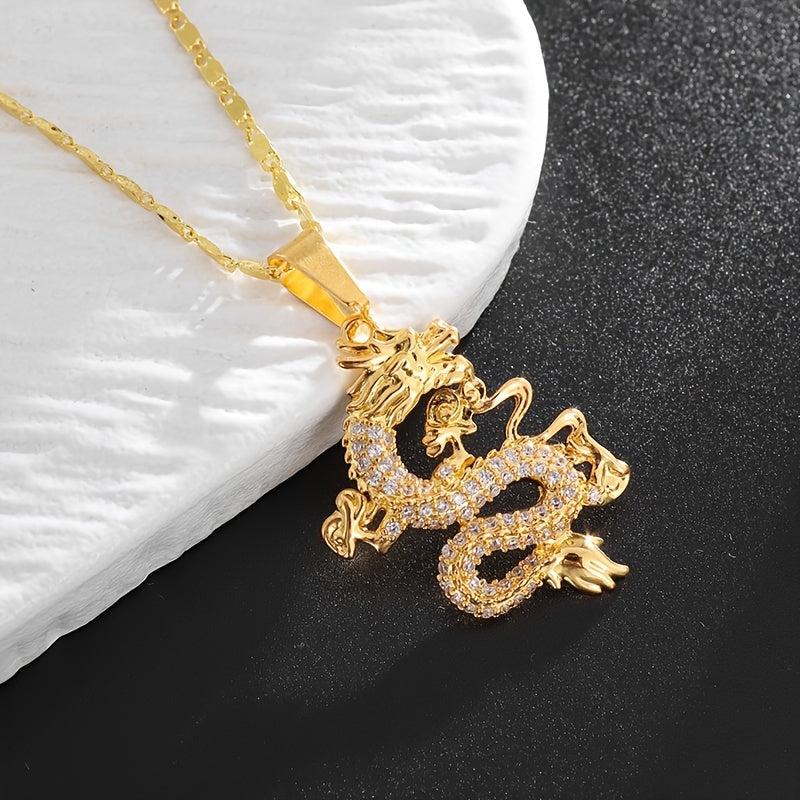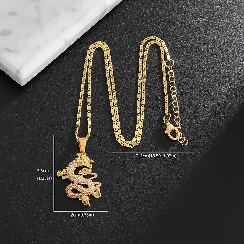 This copper pendant necklace features a handsome dragon design with inlaid rhinestone, perfect for men who love punk and motorcycle style. Ideal for parties or as a unique gift.