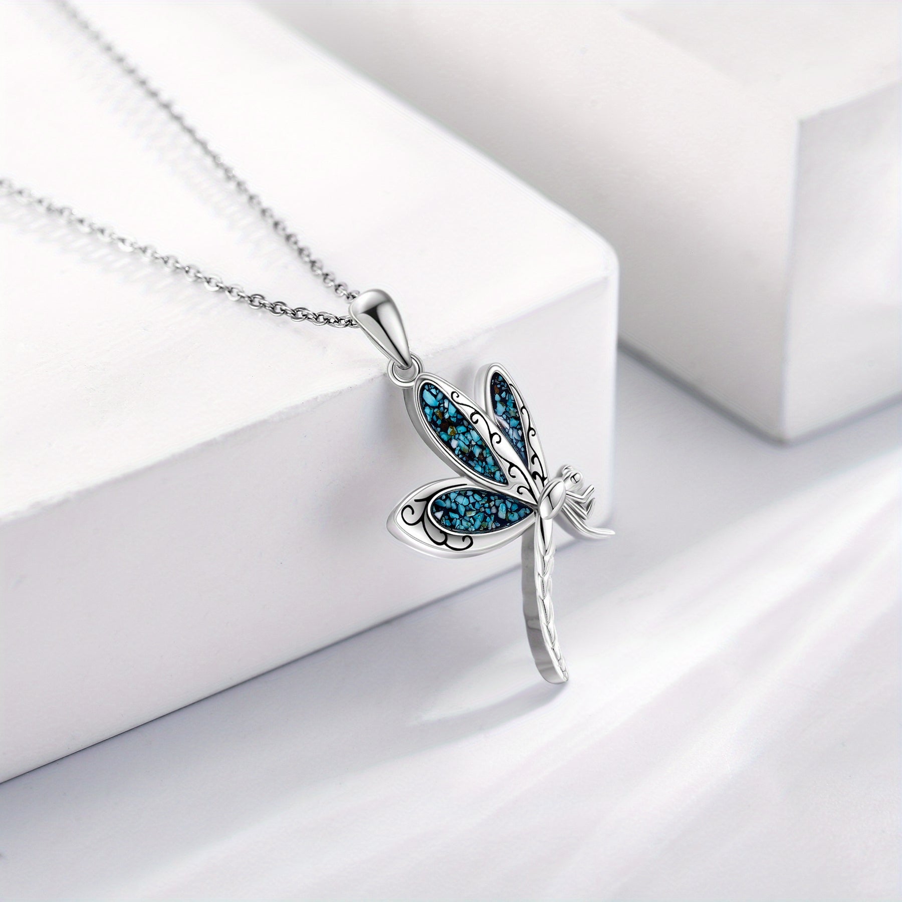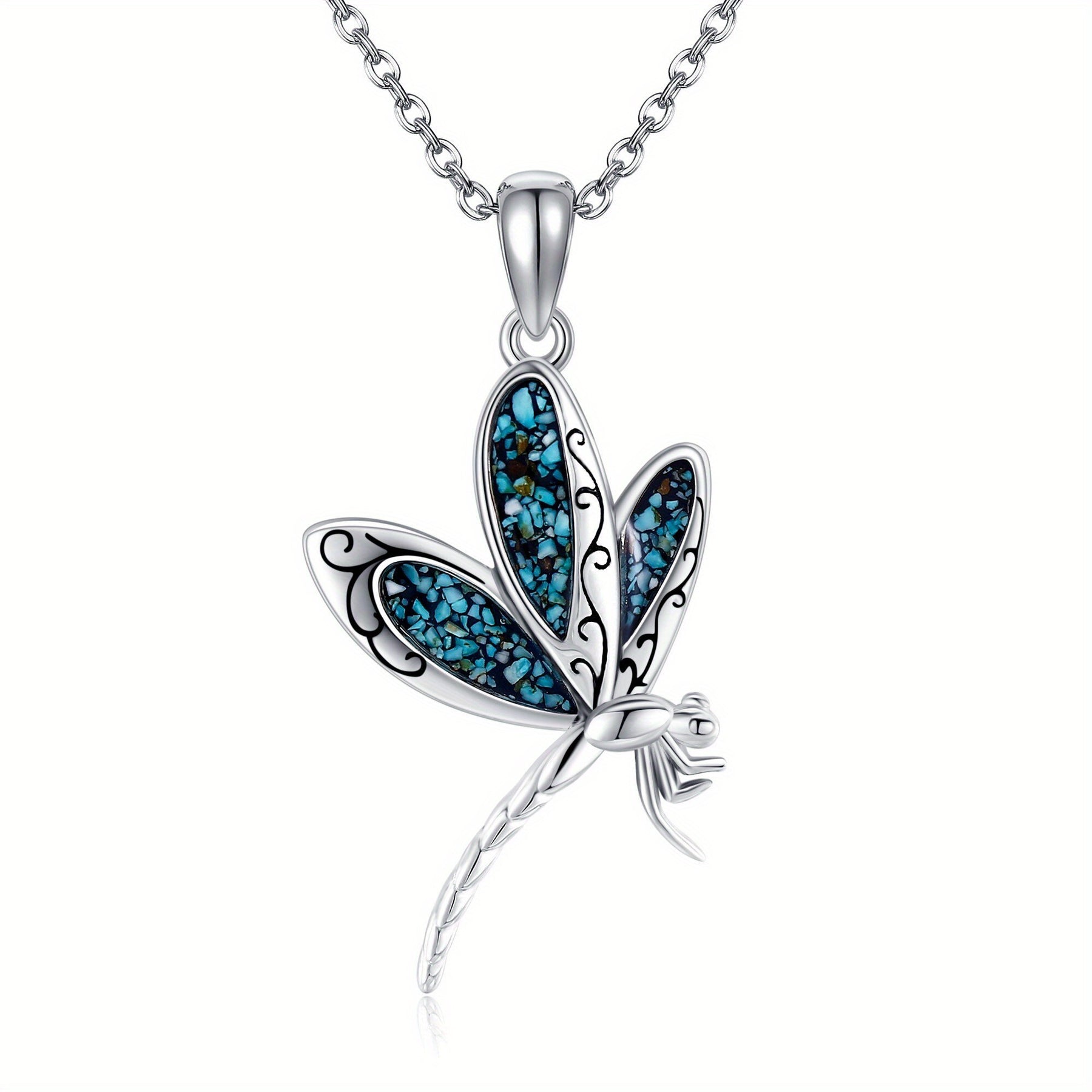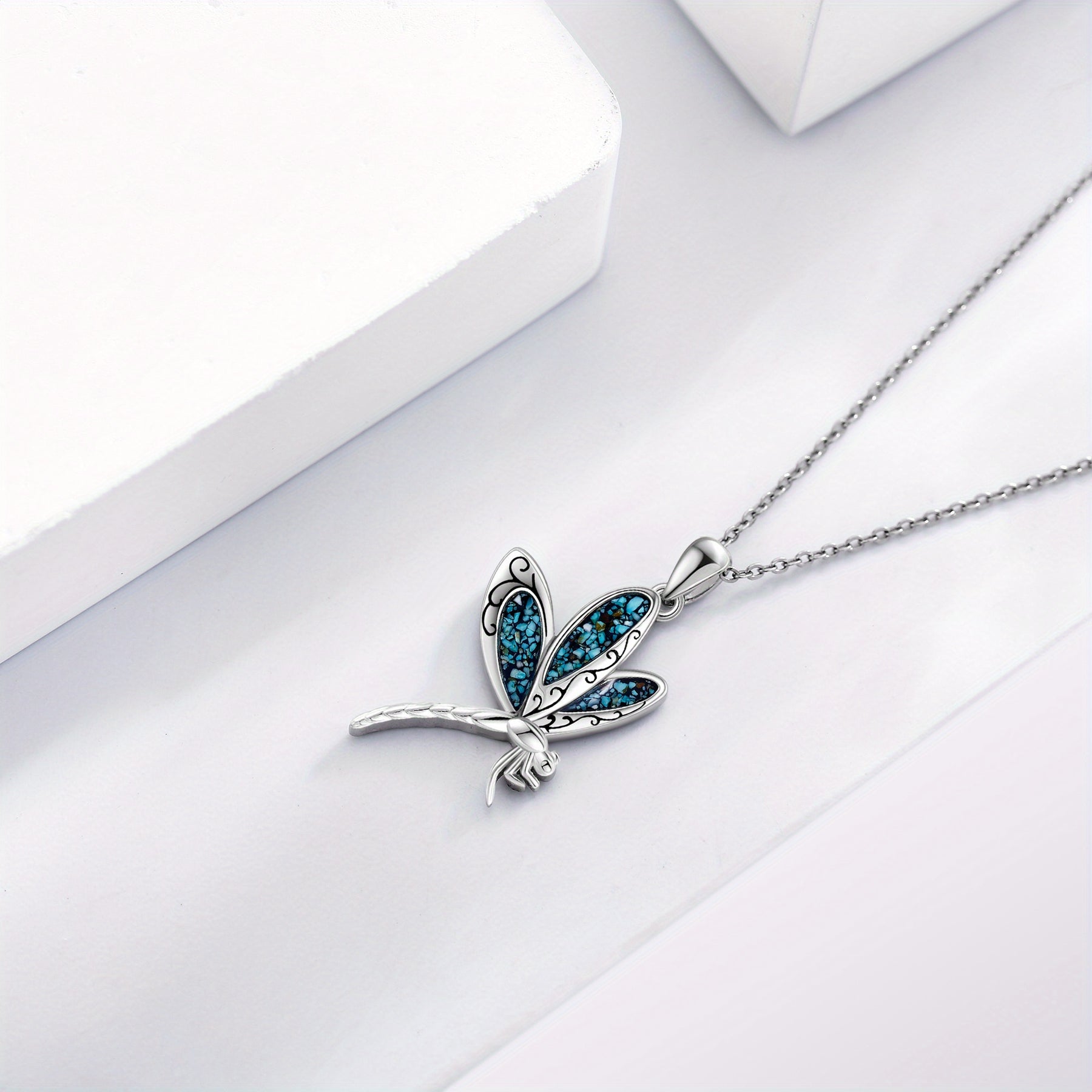 Add a touch of nature and elegance to your outfit with this stunning dragonfly necklace. Made of 925 sterling silver and featuring a turquoise pendant, this exquisite piece is perfect for dragonfly enthusiasts.