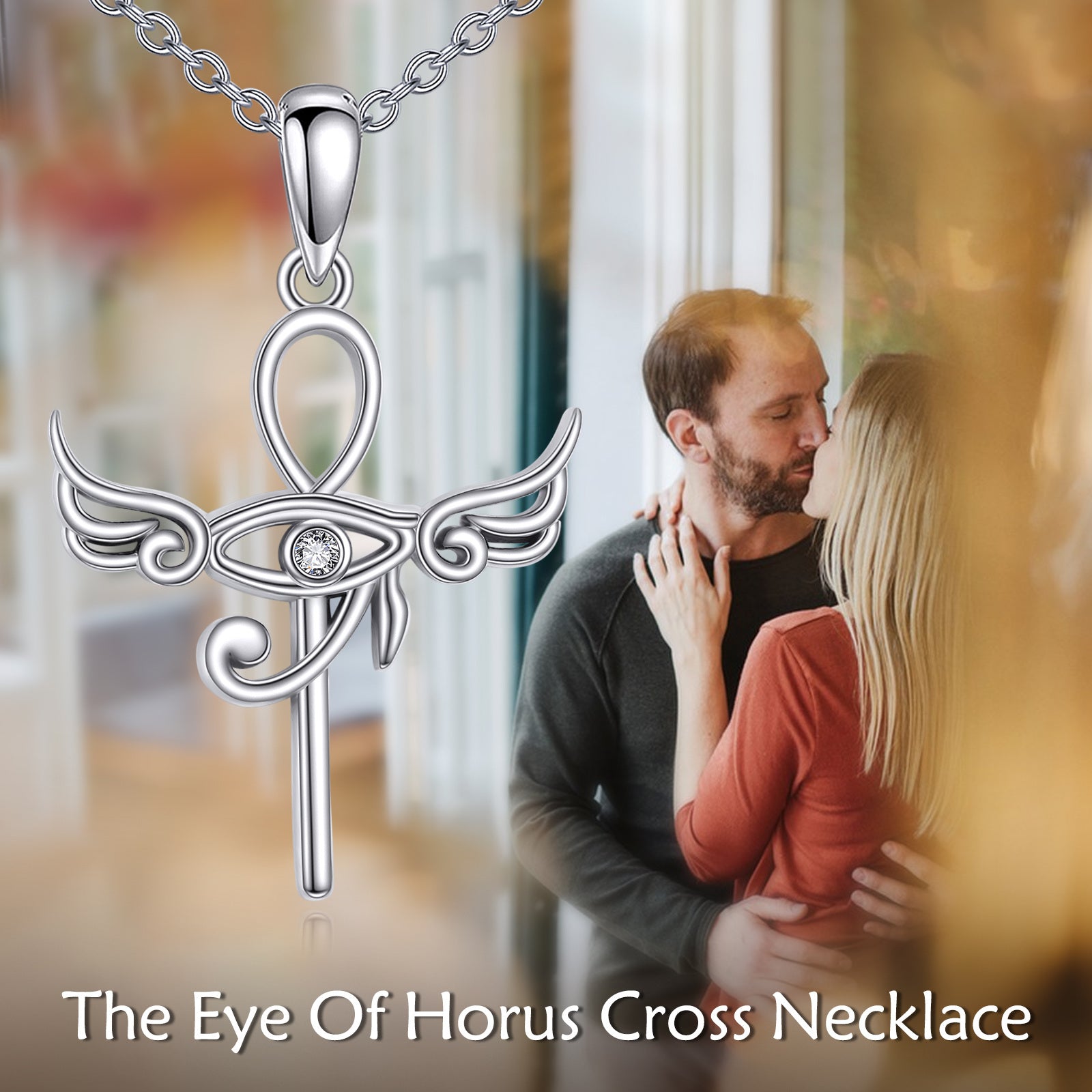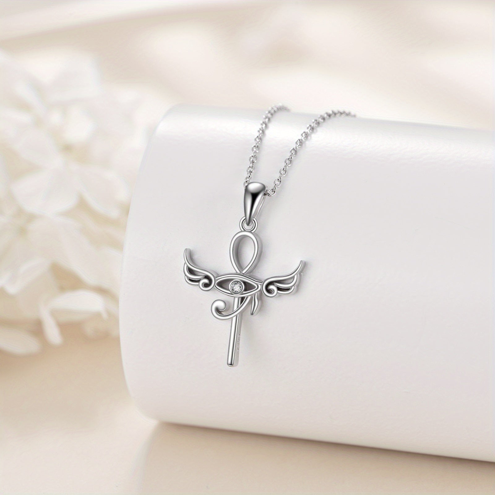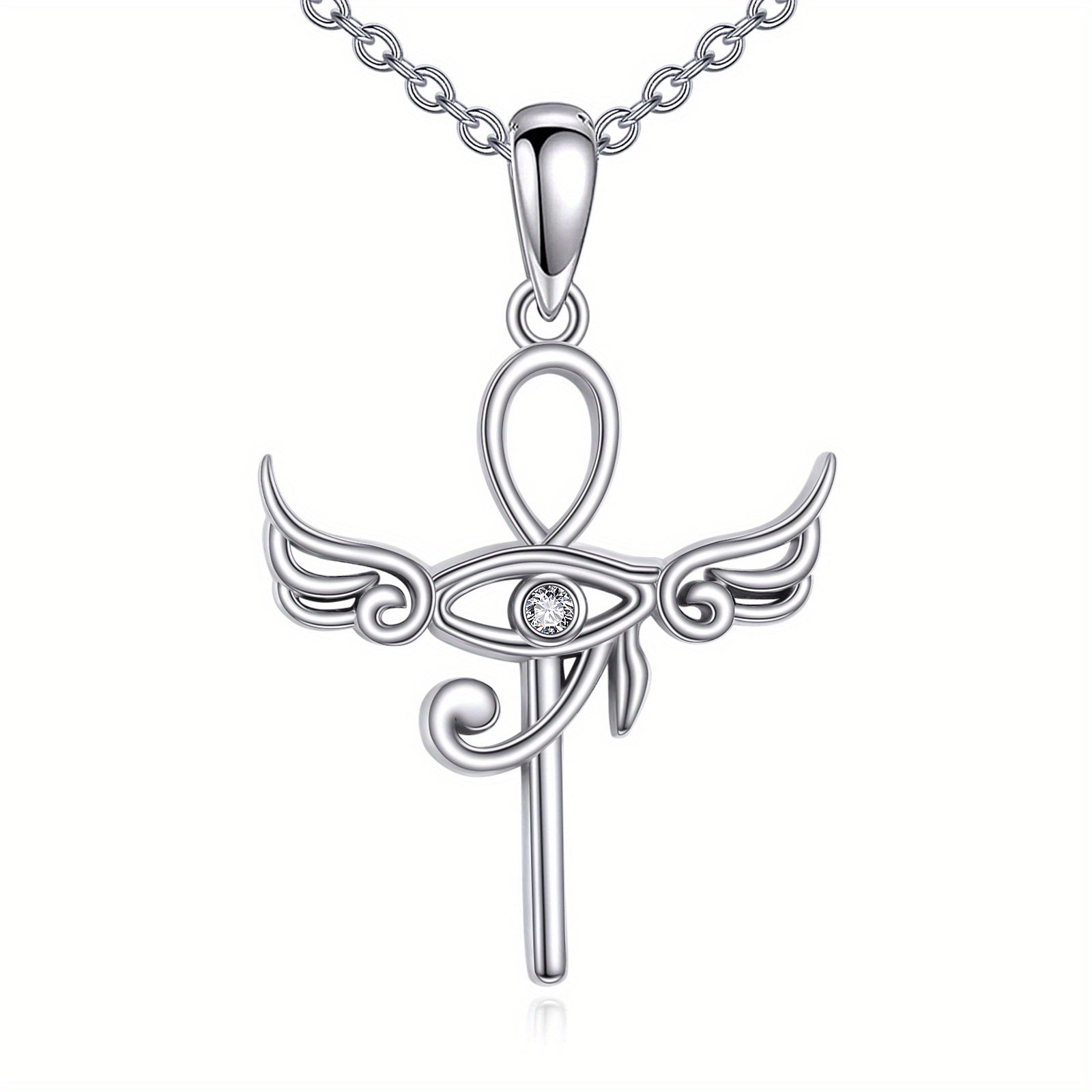This stunning Horus Eye Cross necklace is designed for men and women. It features a pure silvery Egyptian Cross Horus Eye pendant that makes a thoughtful birthday gift for women and girls.