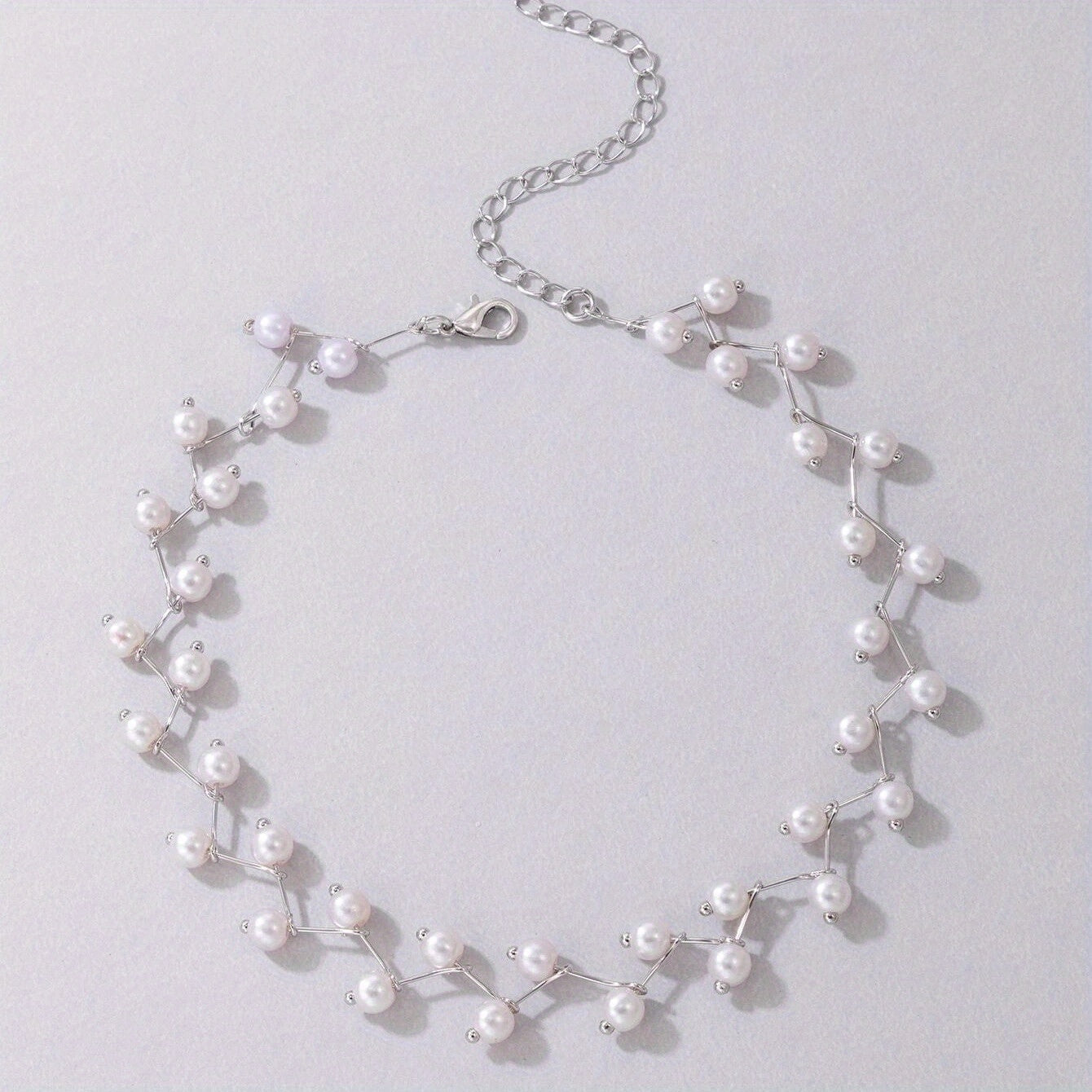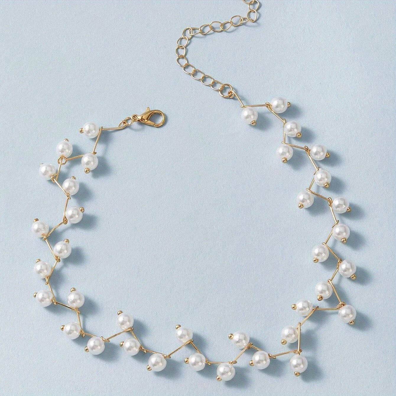 Elevate your style with this statement collarbone chain necklace featuring faux pearl beads. A perfect accessory to enhance your look.