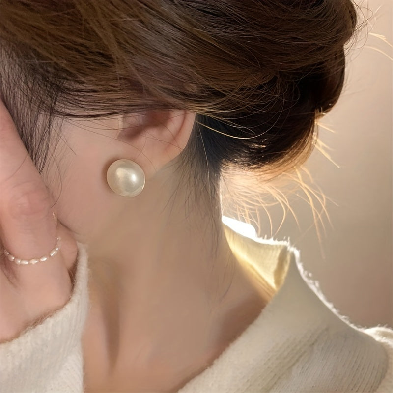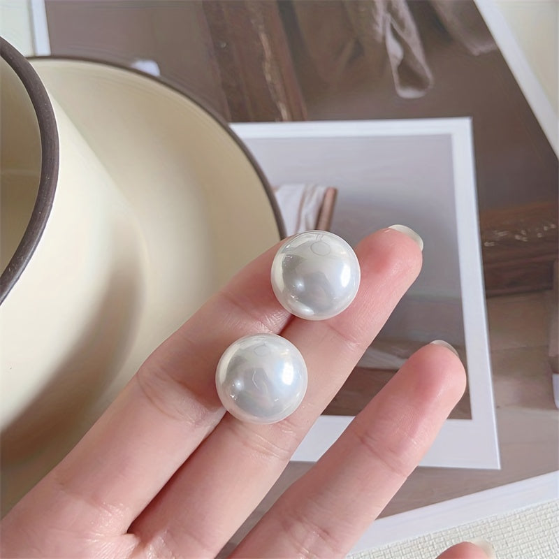 Add a touch of elegance to your look with these stunning large faux pearl stud earrings. Perfect for parties and everyday wear.