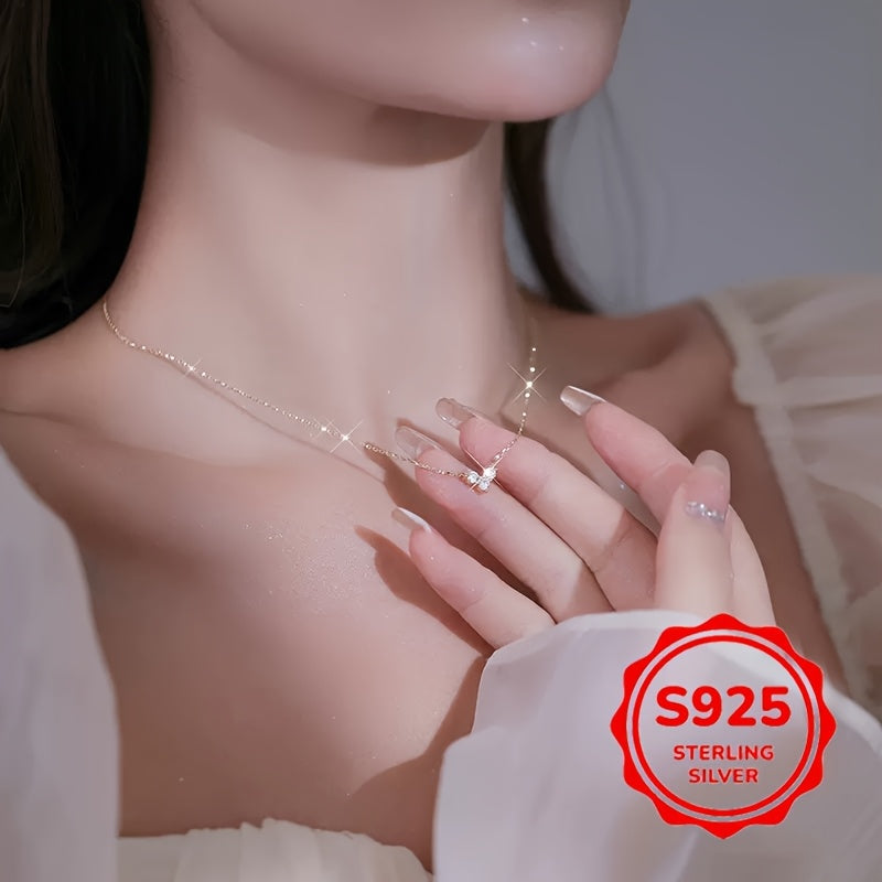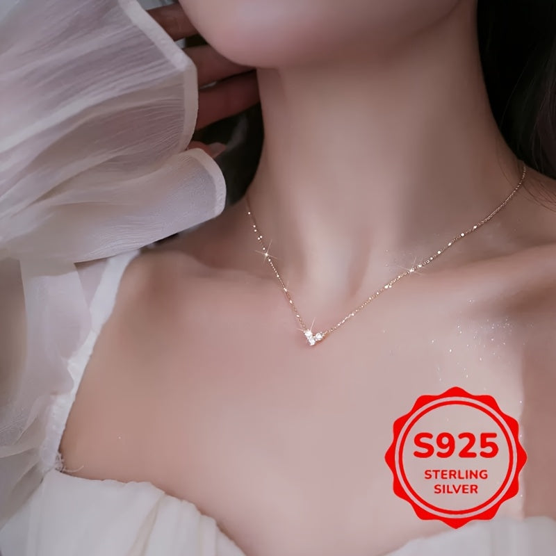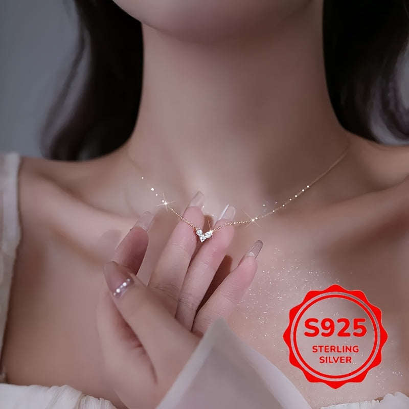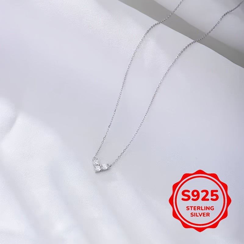 Stylish and minimalist S925 silver necklace with synthetic zirconia heart design. Ideal for everyday wear and makes a great holiday gift.