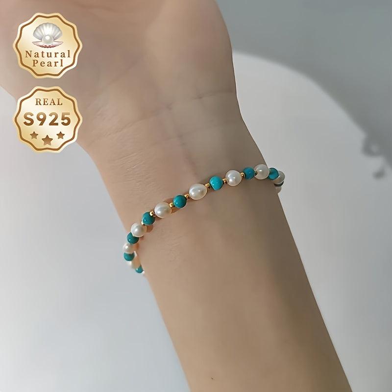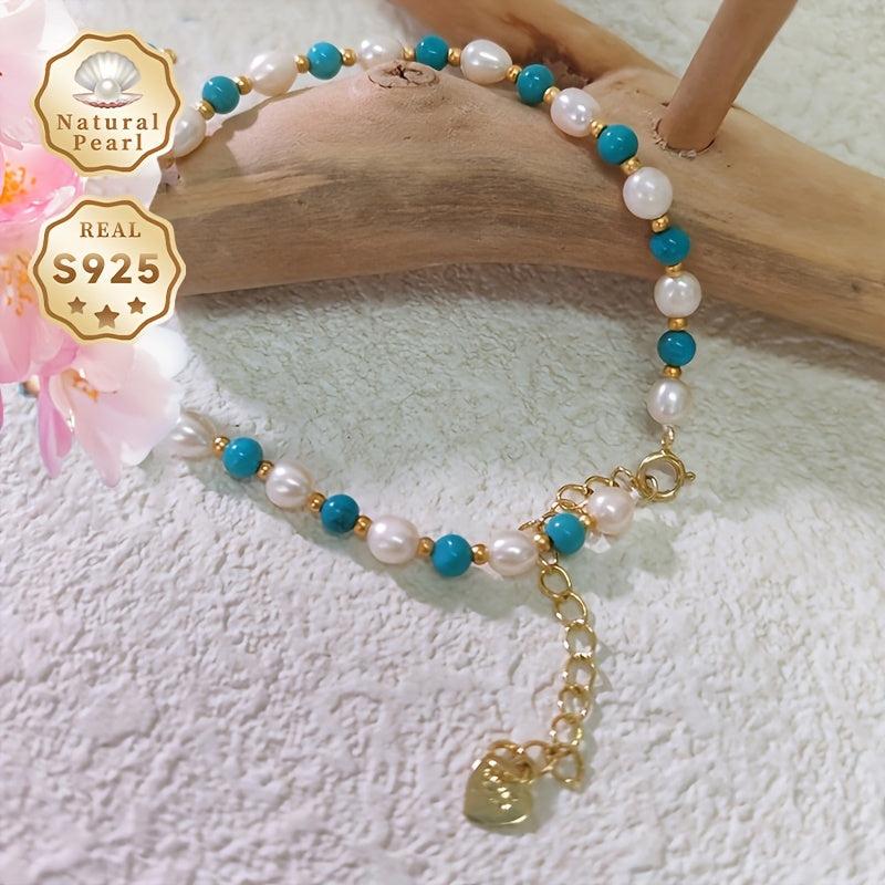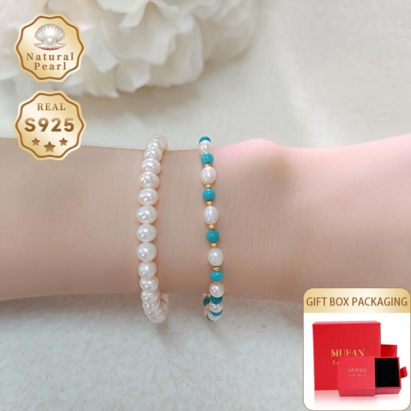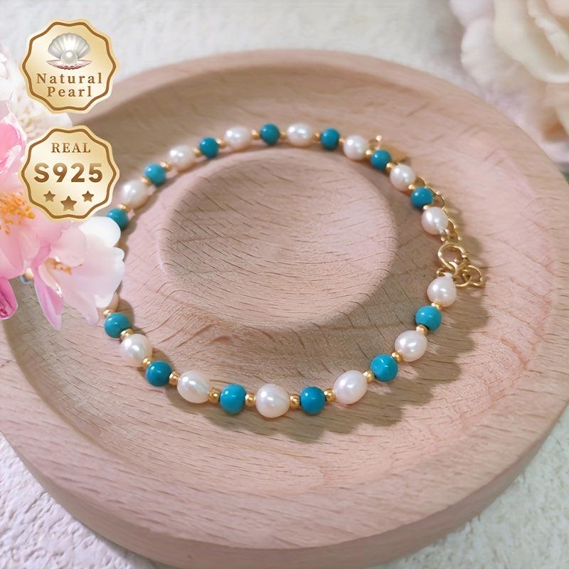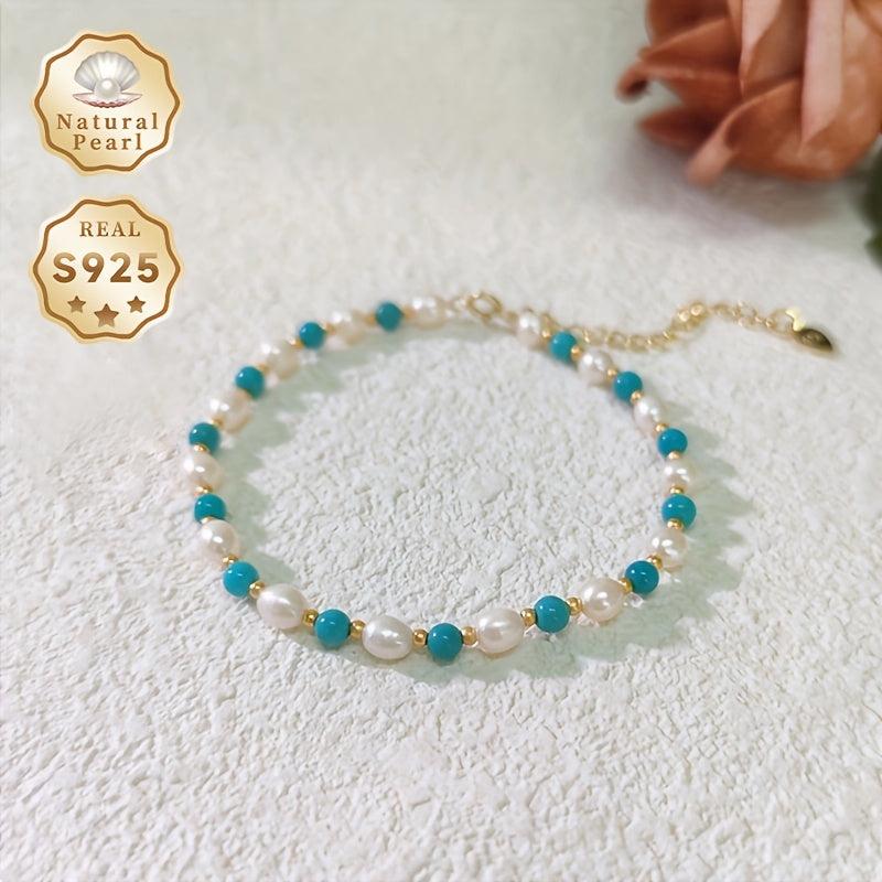 This stunning bracelet features 4 5mm rice-shaped natural freshwater pearls set in S925 silver, exuding elegance and sophistication.