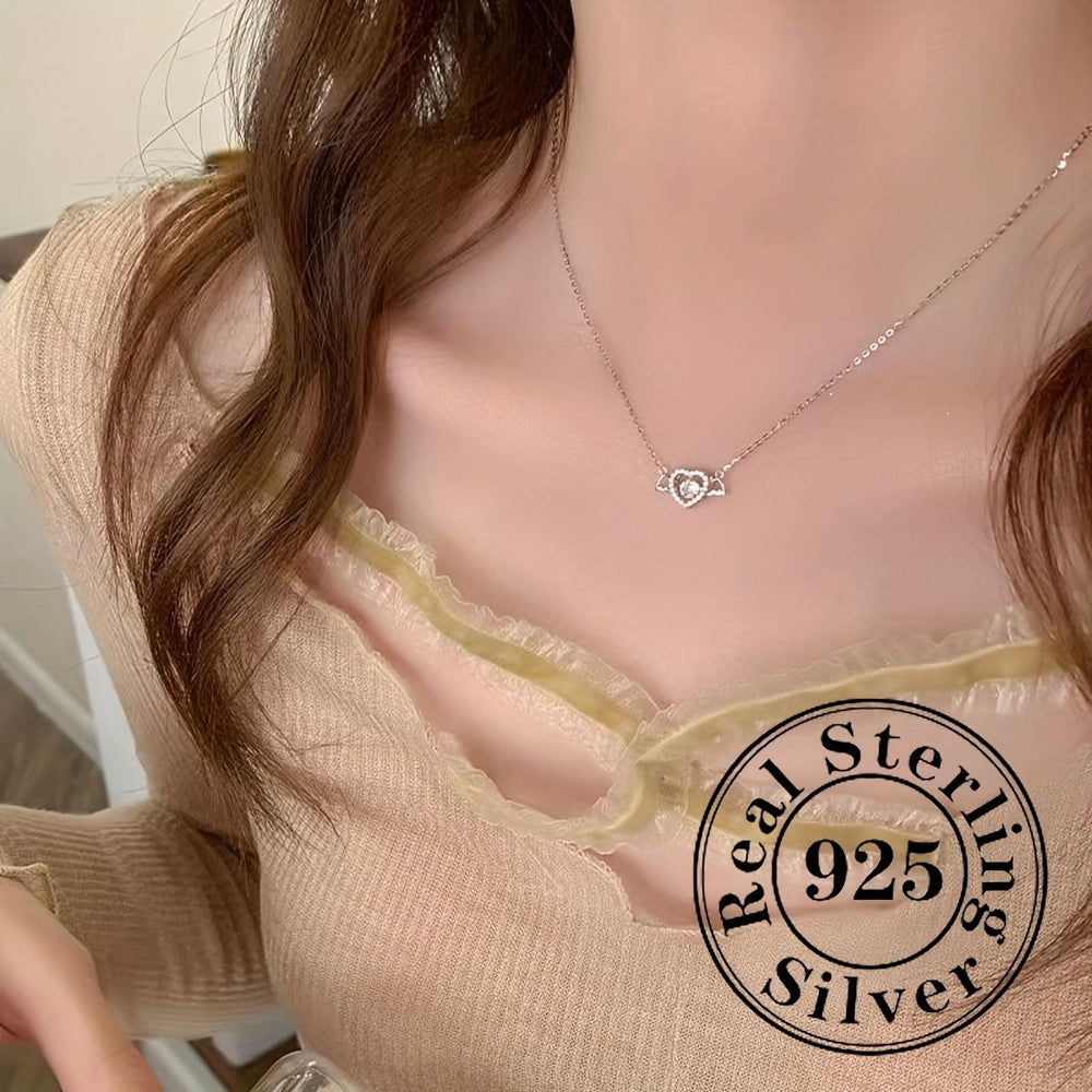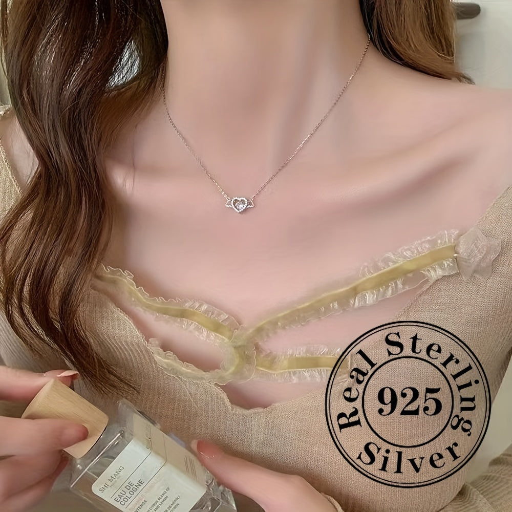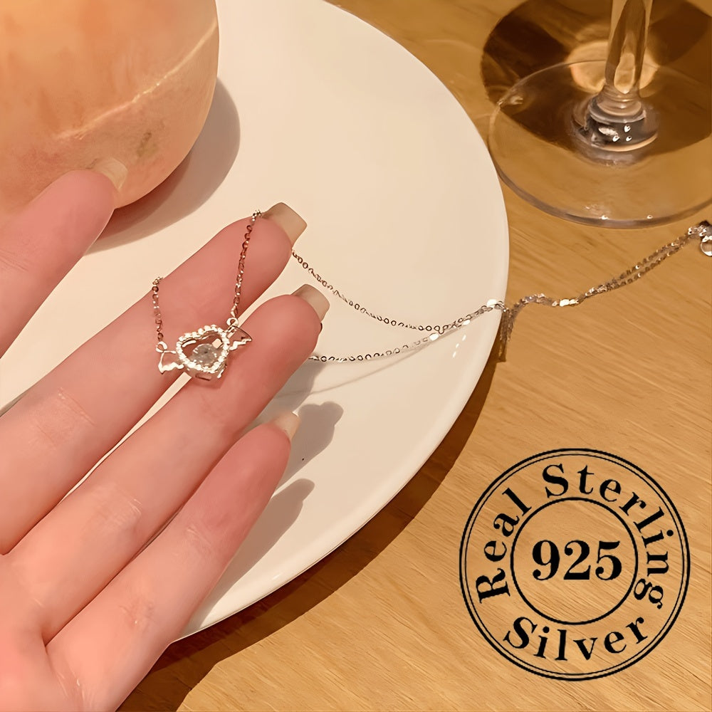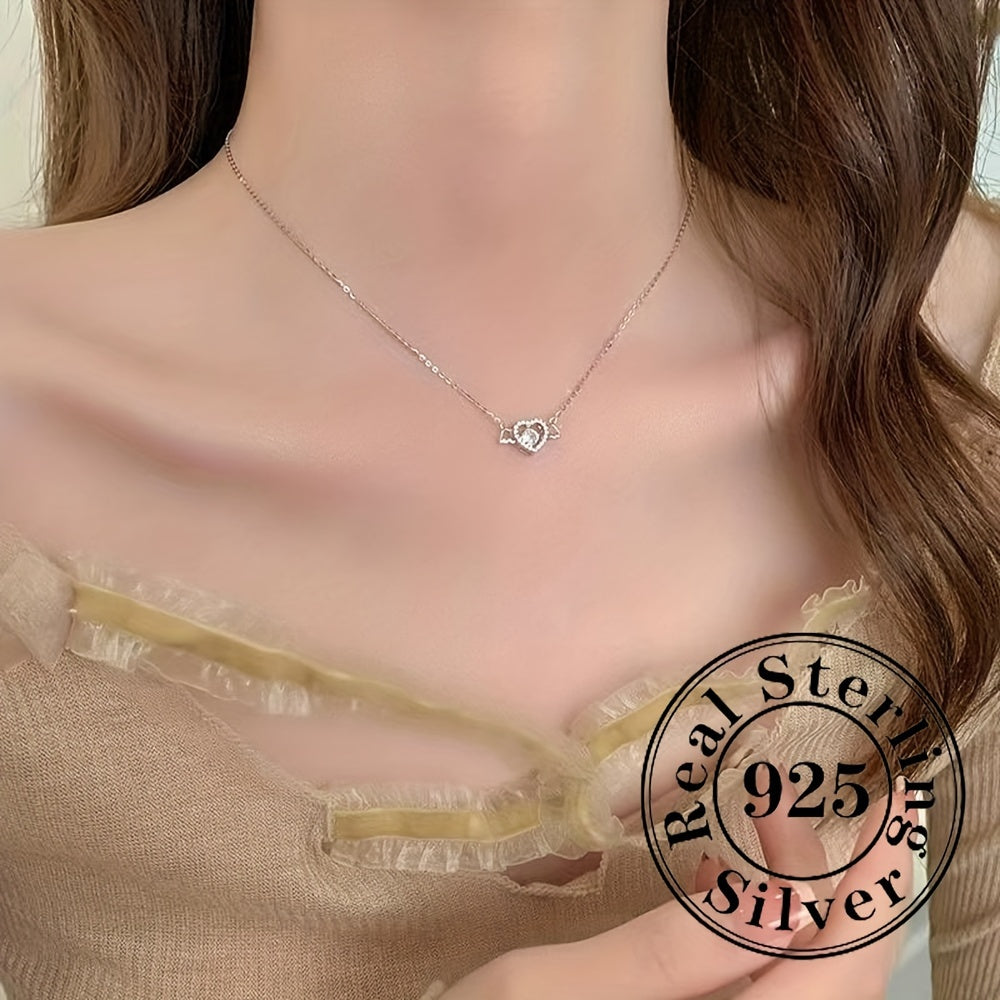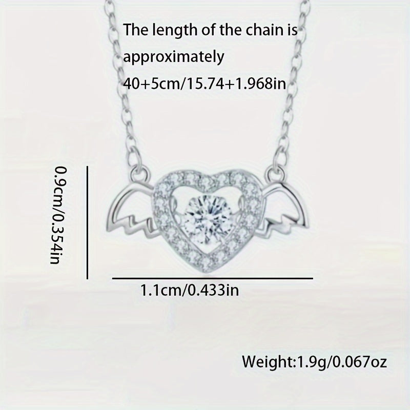 This delicate necklace features a heart-shaped wing pendant crafted in S925 sterling silver, exuding elegance and sophistication, perfect for any occasion.