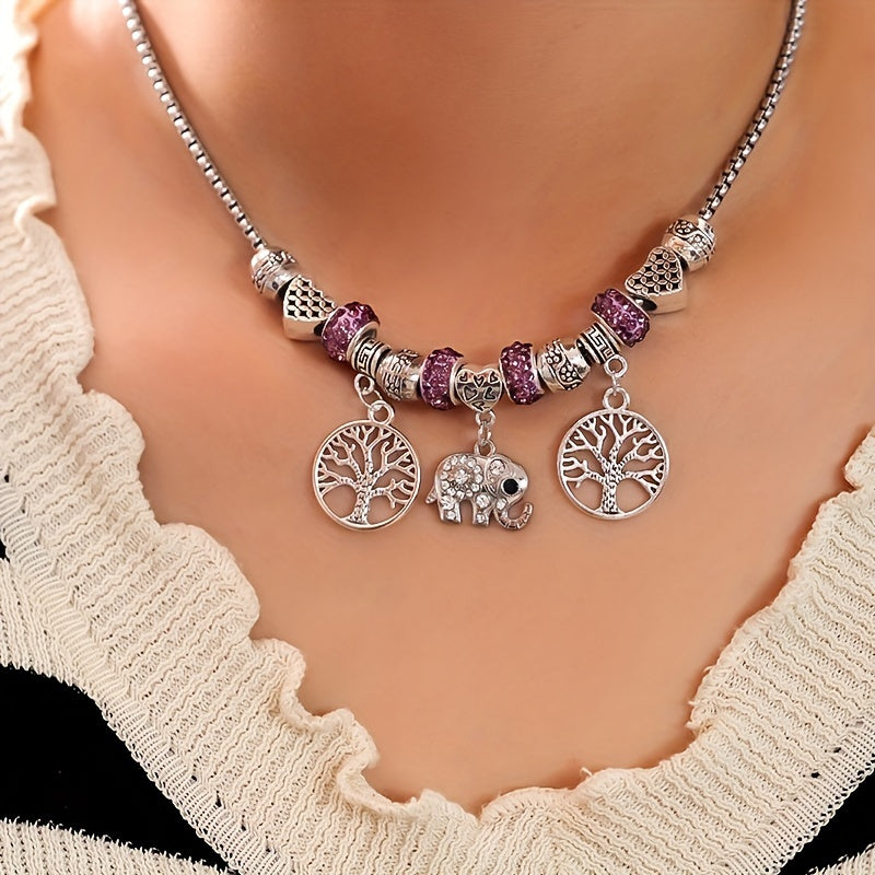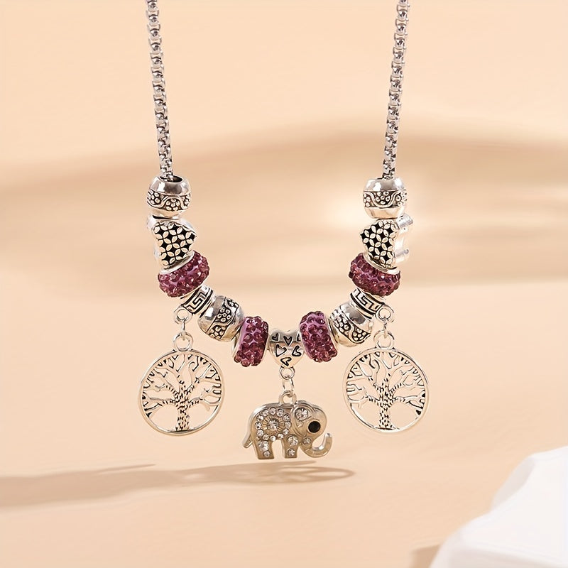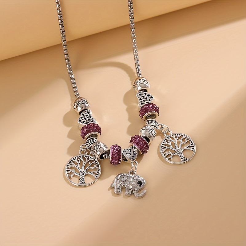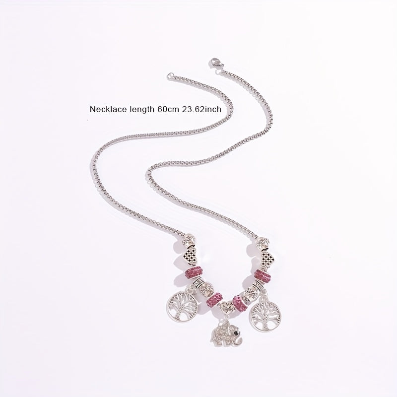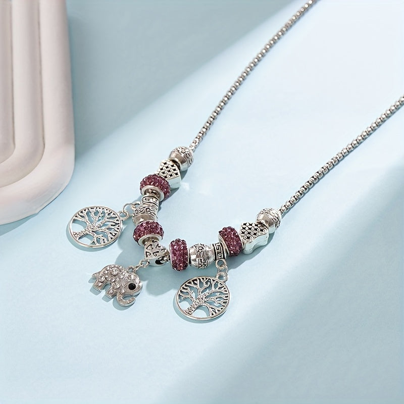 Adorn yourself with this beautiful silvery rhinestone elephant tree of life pendant necklace. Made of high quality silver plated material.