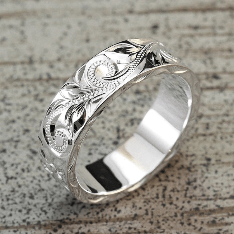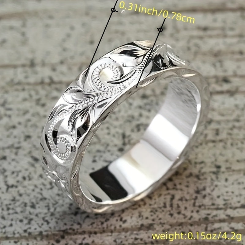 Beautifully designed women's ring with embossed vine pattern, made of silver plated metal. A perfect gift for girls and women.