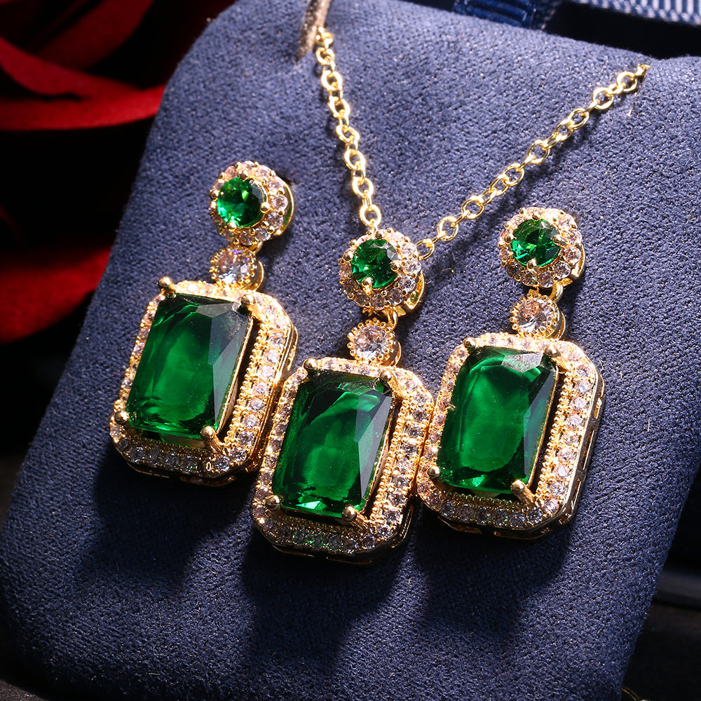 This stunning jewelry set features square emerald green earrings and a necklace, perfect for bridal, wedding, party, or anniversary wear.
