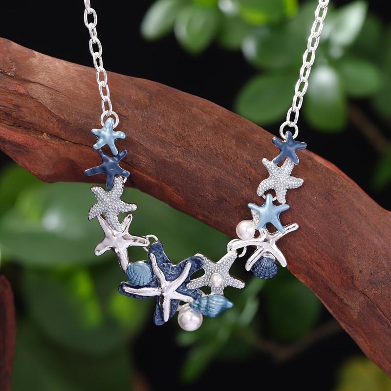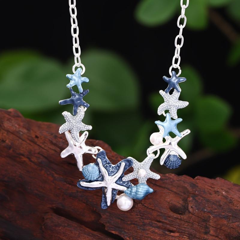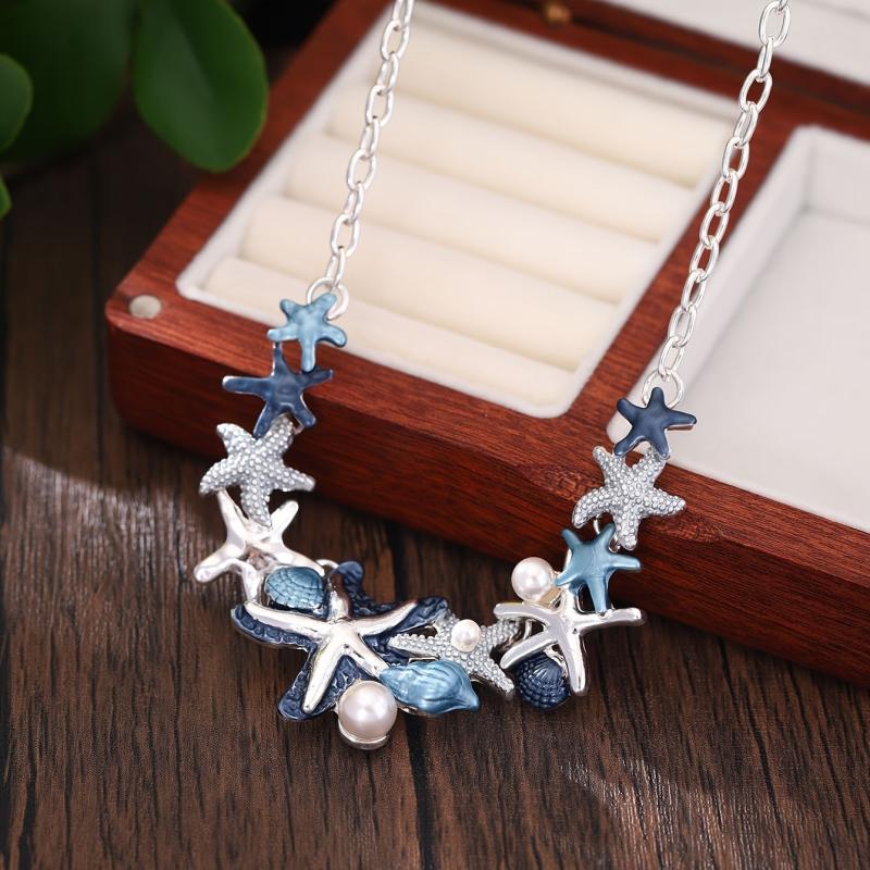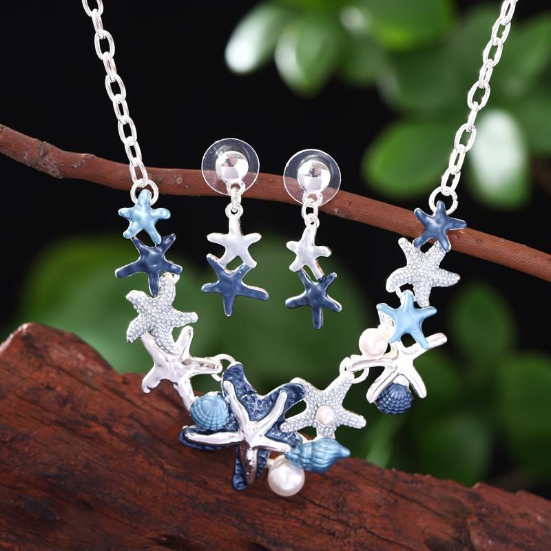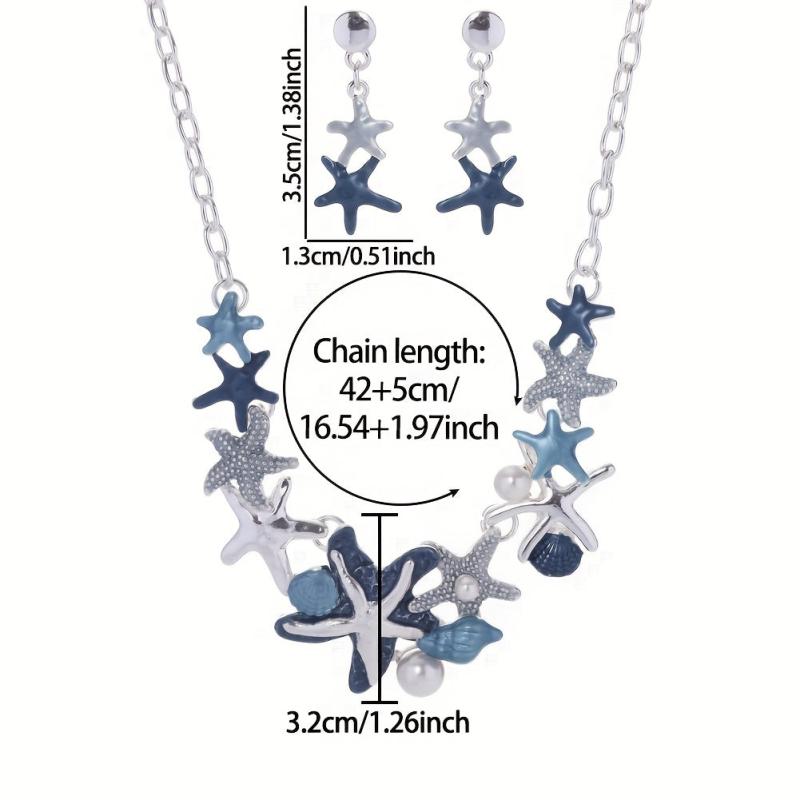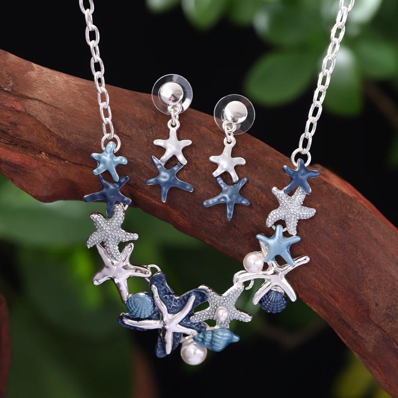 Complete your summer look with this zinc alloy enamel jewelry set featuring a starfish and shell design. Perfect for beach vacations and holidays.