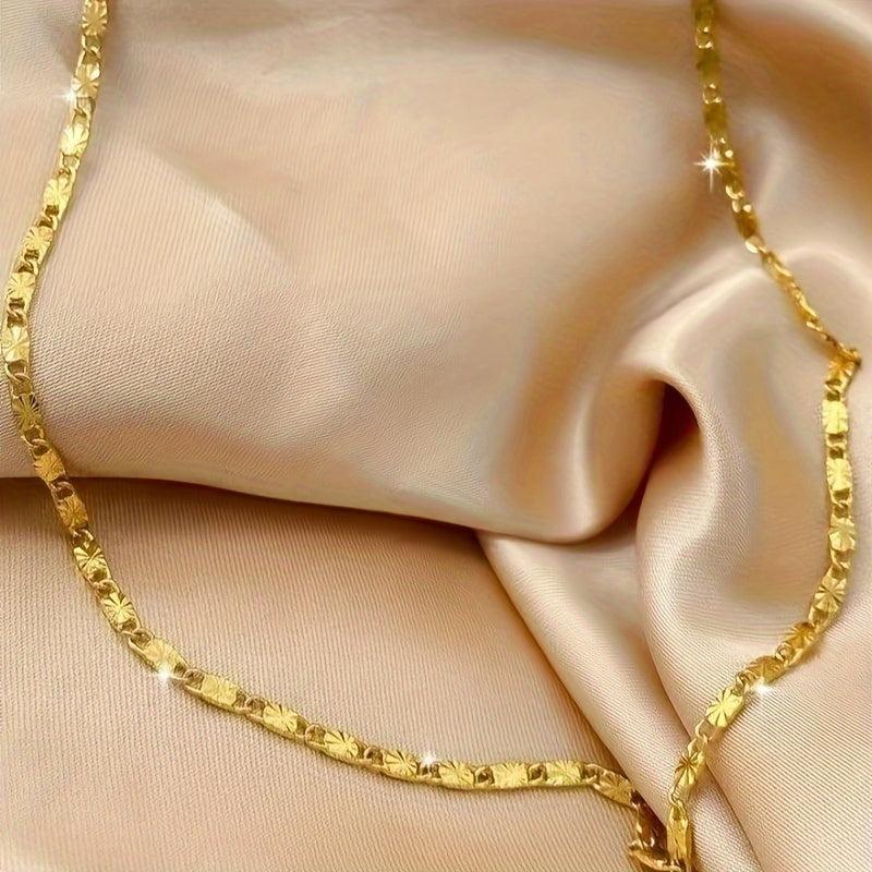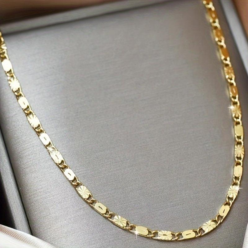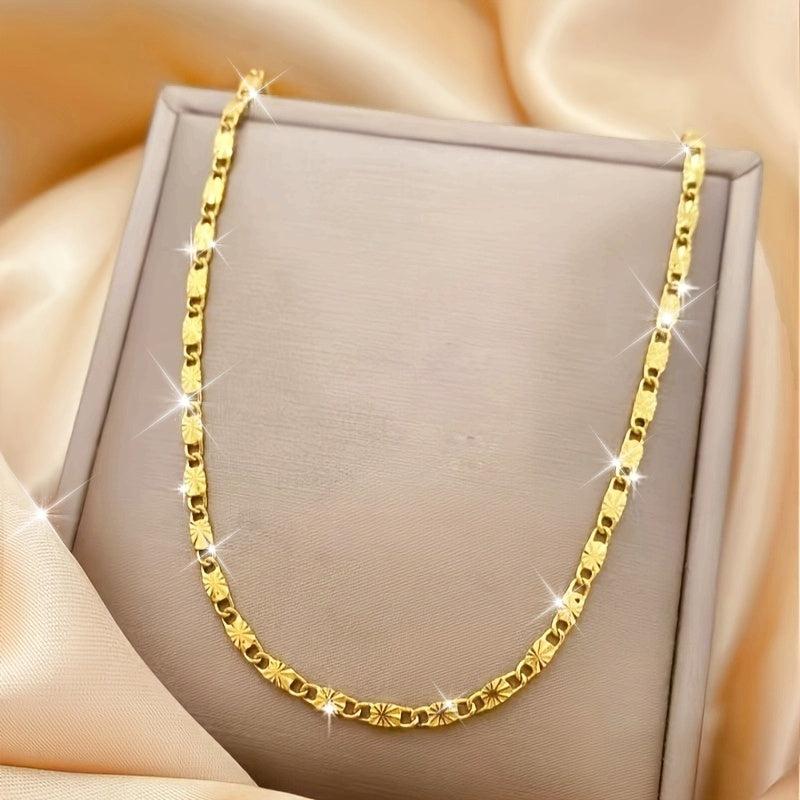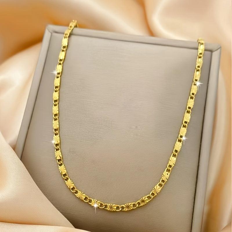 This elegant 5mm engraved flower chain necklace features a sparkling floral design in a durable golden tone, perfect for everyday wear or special occasions. It makes a thoughtful birthday gift for your girlfriend or wife.