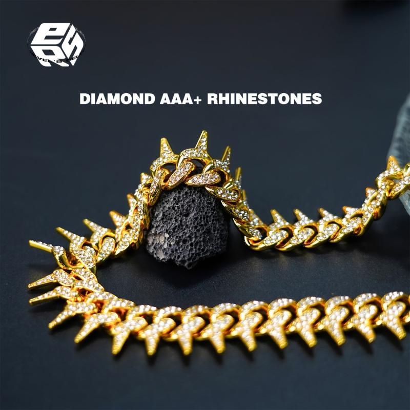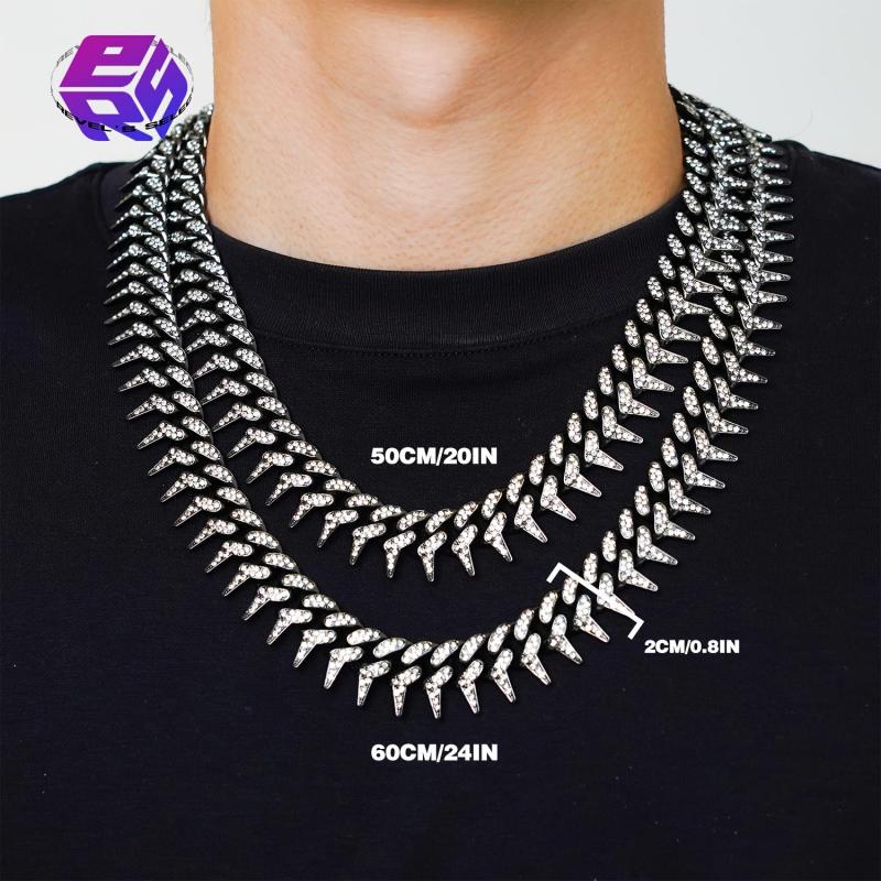 Get the ultimate bling with this 20mm Iced Out Miami Cuban Link Chain Necklace featuring AAA Rhinestones with Thorns. Made for daily wear, this hip-hop jewelry is crafted from Synthetic Cubic Zirconia and Zinc Alloy.