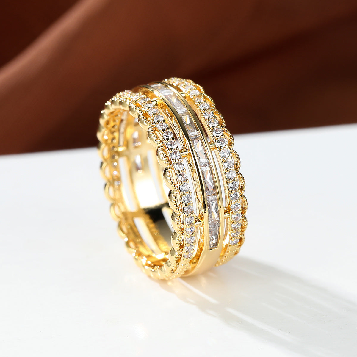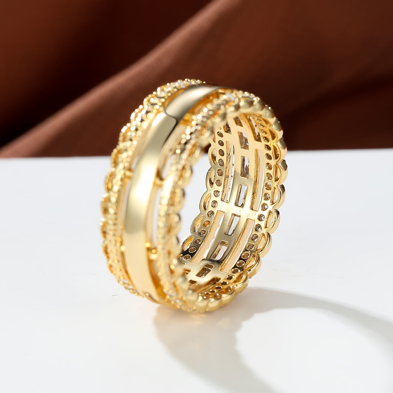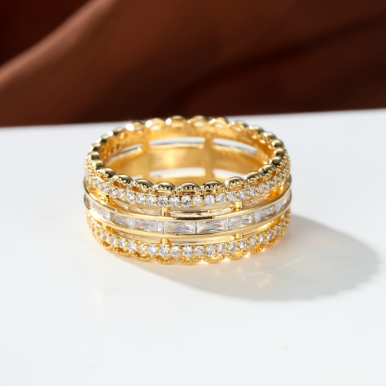 These elegant eternity wedding bands are plated with 18K gold and adorned with sparkling cubic zirconia. Perfect as promise rings for women and girls.