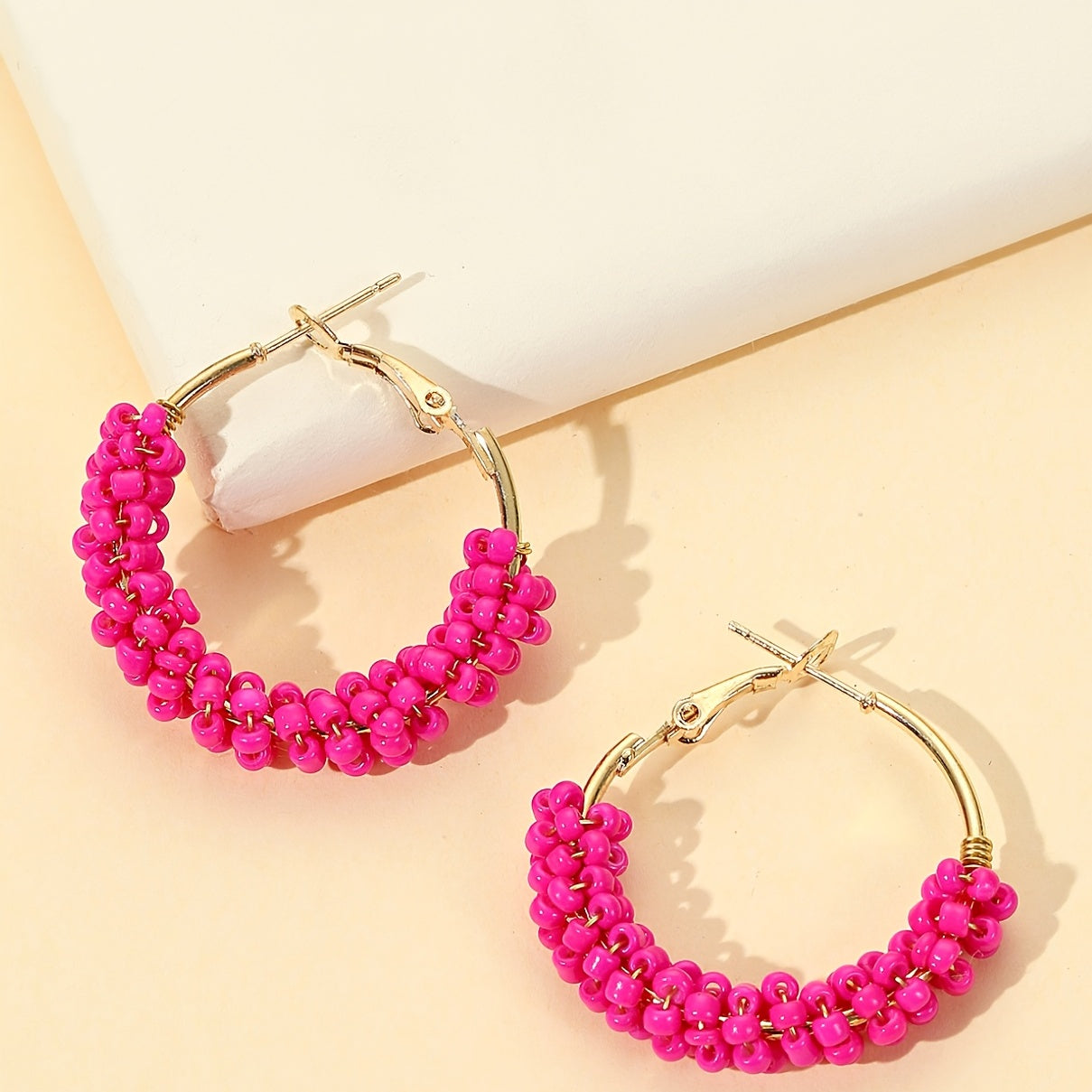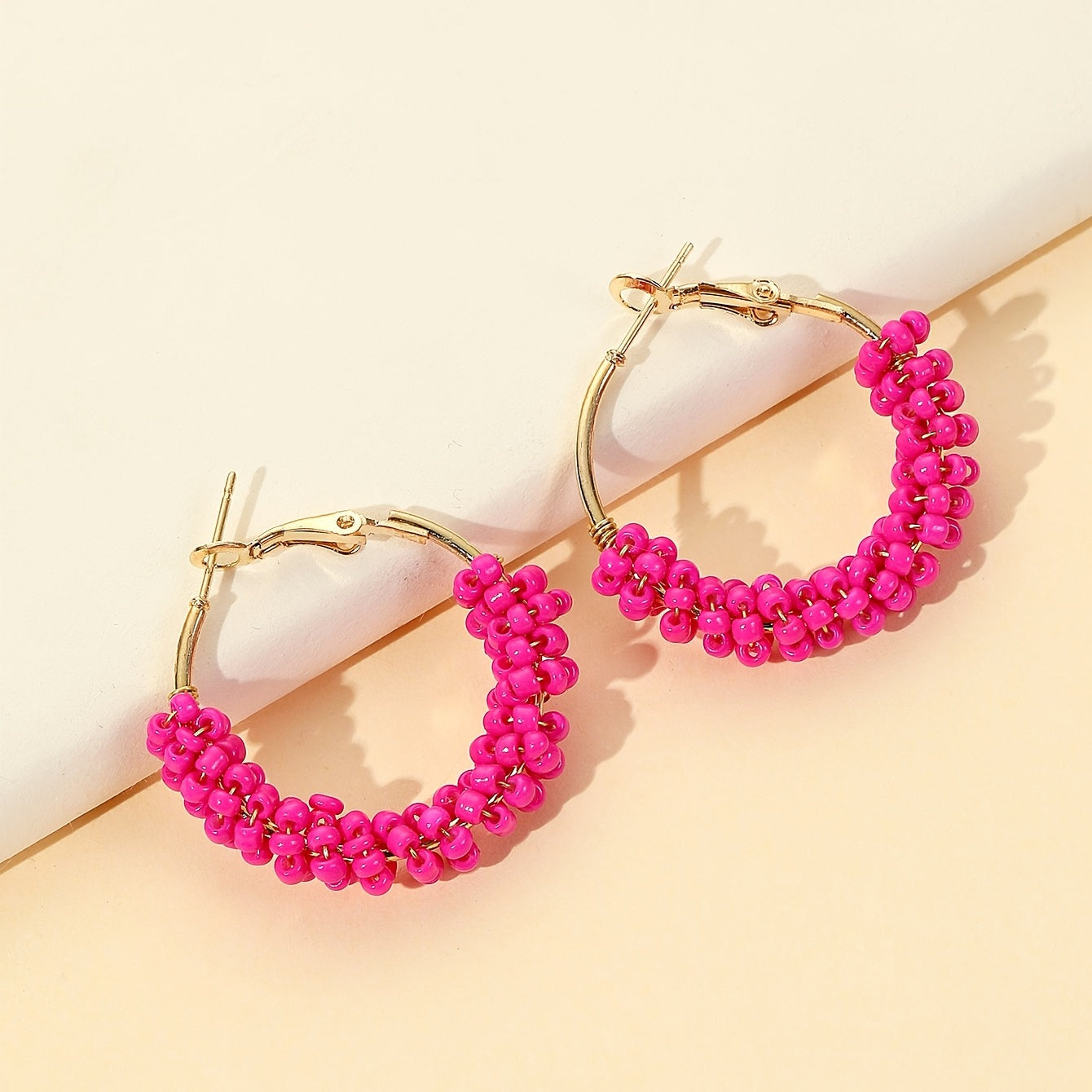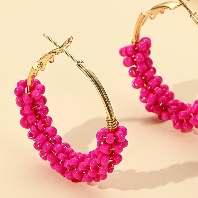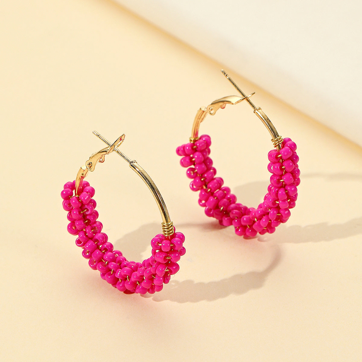 These Ethnic Style Rice Beads Rose Red Hoop Earrings are a perfect accessory for women and girls. They are a great gift option for those who love unique and stylish jewelry pieces.