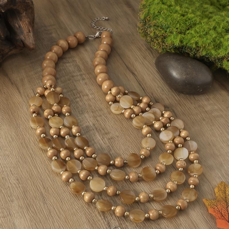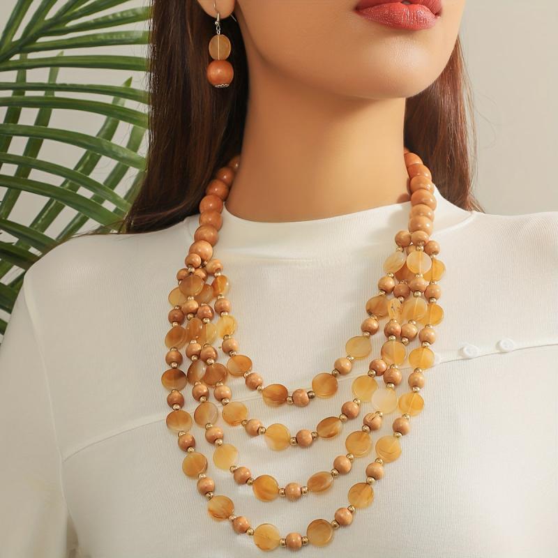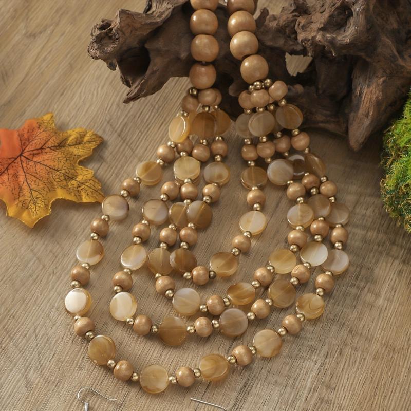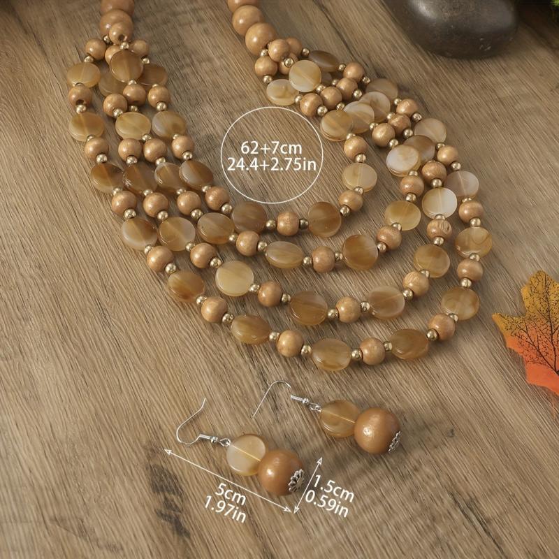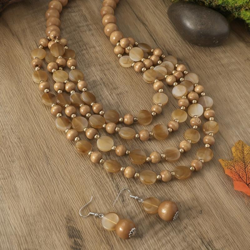Complete your bohemian look with this elegant jewelry set featuring brown resin beads. Perfect for adding a touch of ethnic charm to your outfit.