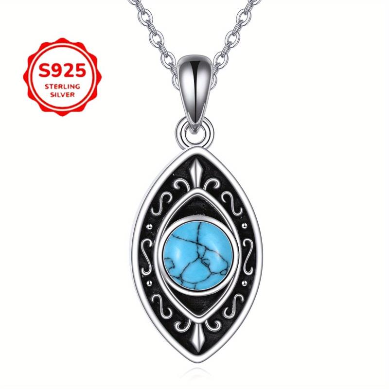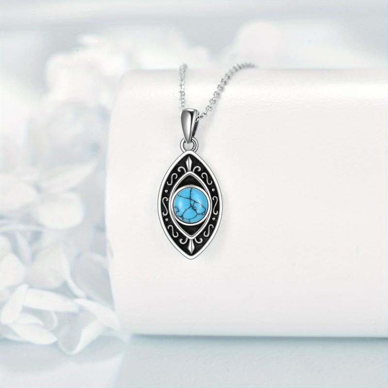 This vintage Evil Eye necklace features a turquoise pendant on a 925 sterling silver chain. It's a perfect luck jewelry gift for women on birthdays.