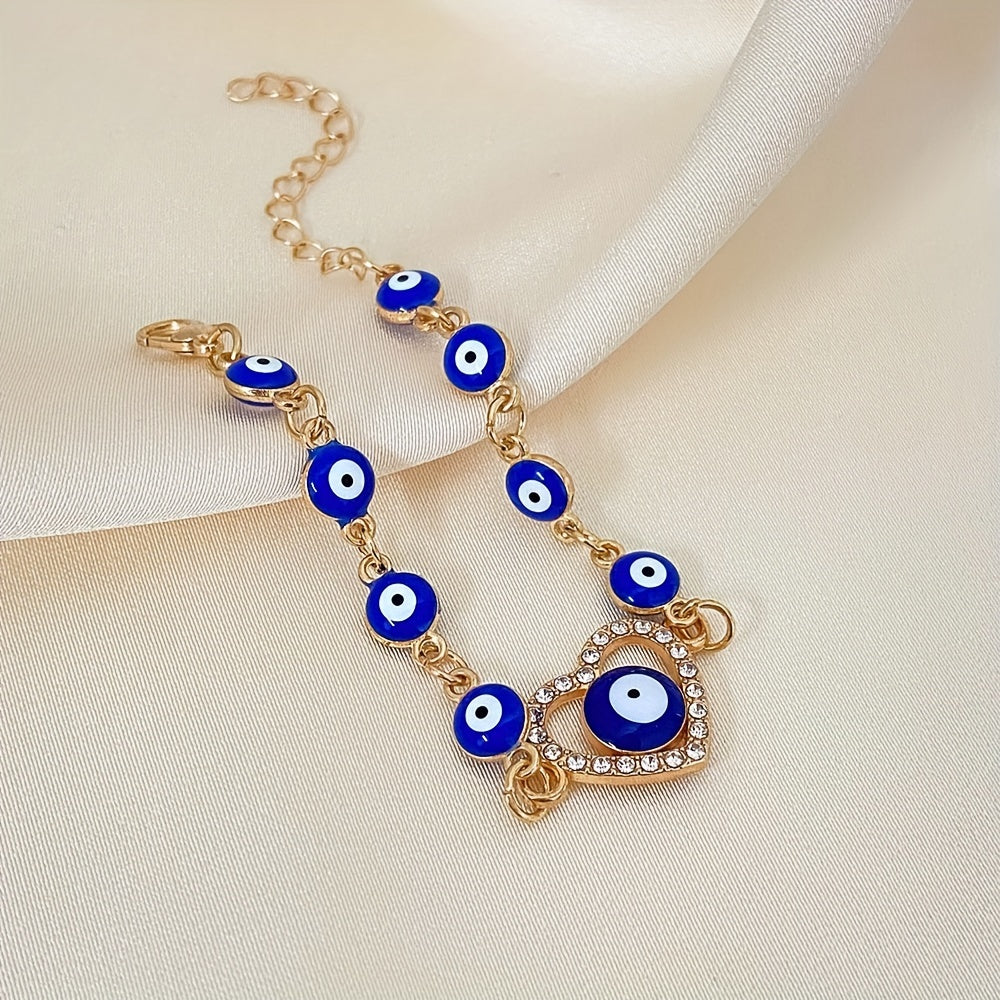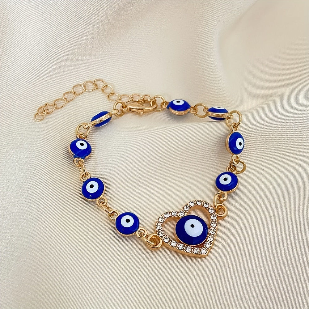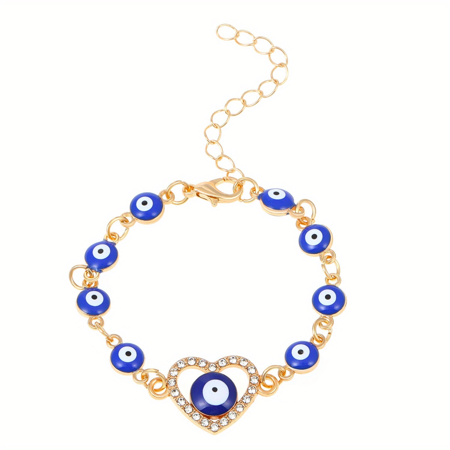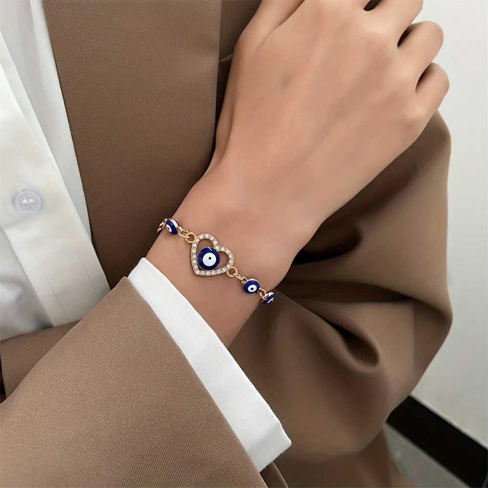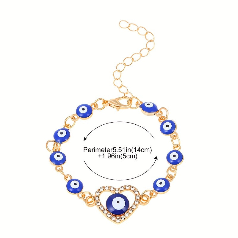 This Evil Eye Hollow Love Heart Chain Bracelet is made of 14K plated alloy, perfect for adding a touch of style to your hand jewelry collection.