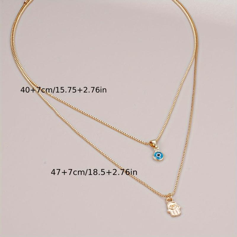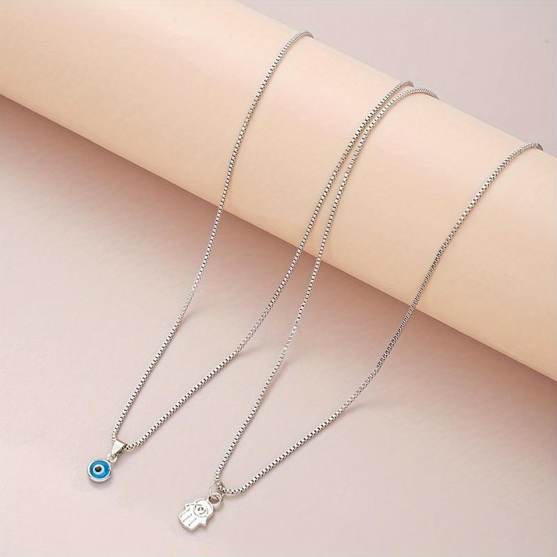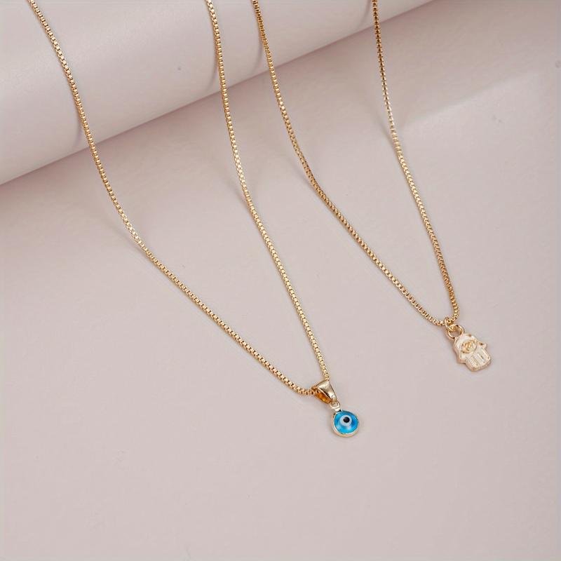 Elegant 2pcs necklace set featuring Evil Eye design in golden and silvery options. Perfect for casual wear or a vacation date outfit.