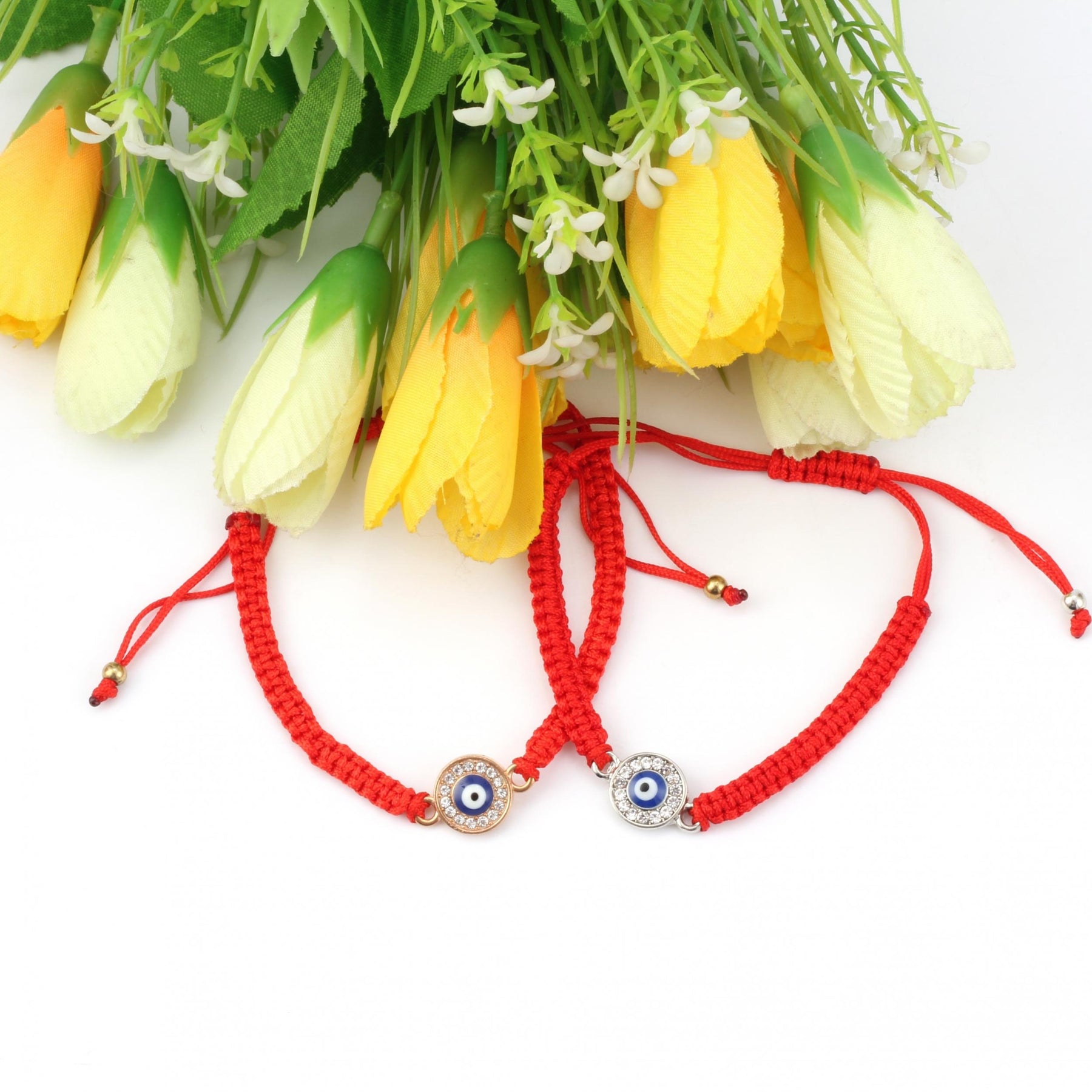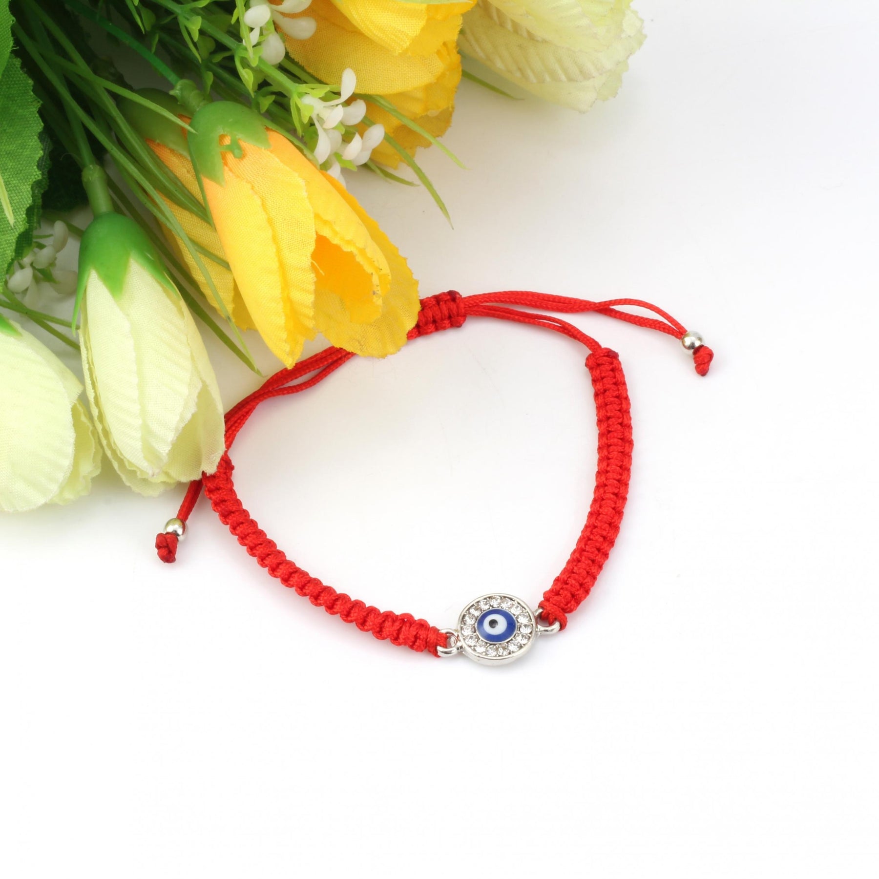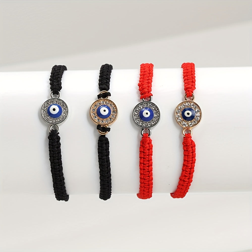 This braided rope bracelet features a striking evil eye design with rhinestones, perfect for both men and women. The red weave string adds a pop of color to your outfit, and the adjustable closure ensures a comfortable fit. Wear this lucky eye bracelet as a stylish accessory or as a symbol of protection.