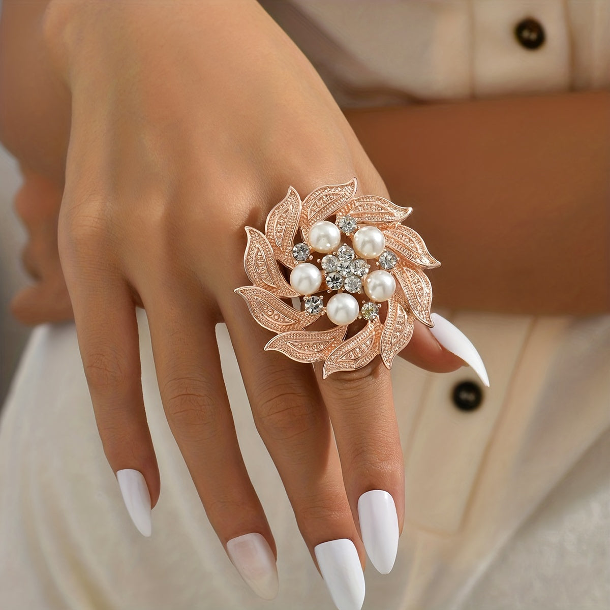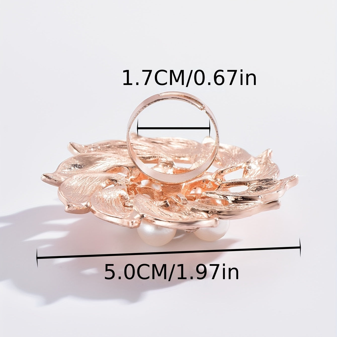 This stunning flower ring is adorned with shining decorations and golden leaves, making it a perfect accessory for special occasions. It's a great birthday gift for your girl!